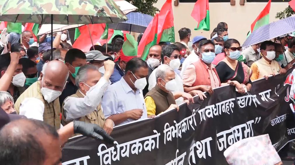 नागरिकता विधेयकका विभेदकारी प्रावधान हटाउन माग गर्दै जनता समाजवादी पार्टी (जसपा) ले प्रदर्शन गरेको छ । जसपा (राष्ट्रिय जनता पार्टी र समाजवादी पार्टी) का शीर्ष नेताहरु नागरिकता विधेयकको विरोधमा सडकमा उत्रिएका हुन् । विदेशी बुहारीलाई ७ वर्षपछि मात्रै अंगीकृत नागरिकता दिने विदेशी ज्वाईलाई नागरिकता नदिने प्रावधान विरुद्ध प्रदर्शन गरिएको जसपाले जनाएको छ । माइतीघरबाट बाजागाजासहित बानेश्वरसम्म गरिएको प्रदर्शनका क्रममा उनीहरुले जातिय विभेद अन्त्य गर्नुपर्ने, नागरिकता विधेयकका विभेदकारी प्रावधान खारेज गर्नुपर्ने भन्दै नारा समेत लगाएका थिए । प्रदर्शनमा डा. बाबुराम भट्टराई, महन्थ ठाकुर, उपेन्द्र यादव लगायतका उच्च पदस्थ नेता र कार्यकर्ताहरुको सहभागिता रहेको थियो ।