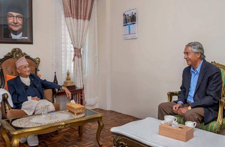 प्रधानमन्त्री केपी शर्मा ओलीले प्रमुख प्रतिपक्षी दल नेपाली काँग्रेसका सभापति तथा पूर्व-प्रधानमन्त्री शेरबहादुर देउवासँग छलफल गर्नुभएको छ। उहाँहरुबीच समसामयिक राजनीतिक विषयमा छलफल भएको प्रधानमन्त्री ओलीका प्रेस सल्लाहकार सूर्य थापाले जानकारी दिनुभयो।