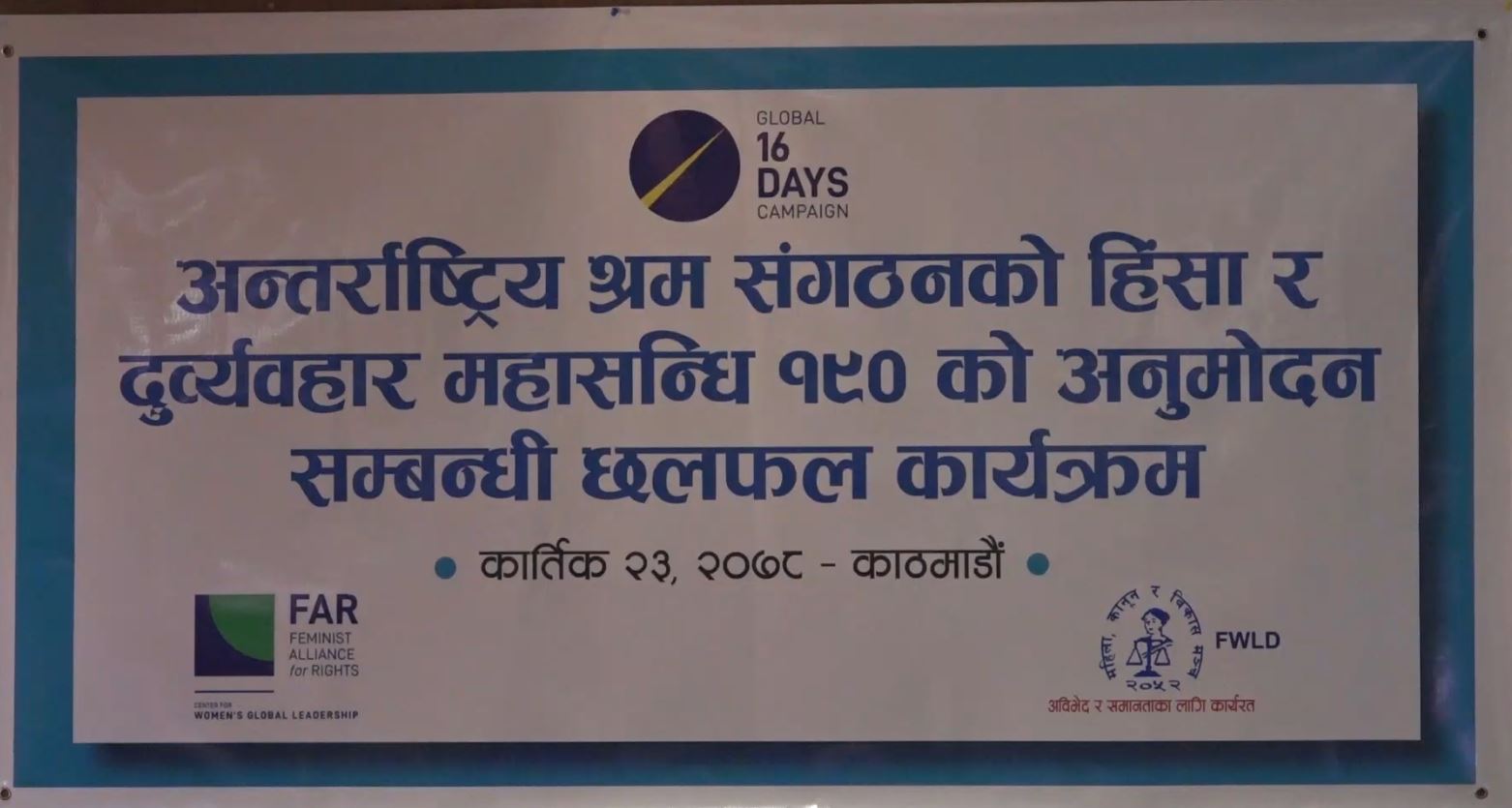 अन्तर्राष्ट्रिय श्रम सङ्गठनको हिंसा र दुव्र्यवहार महासन्धि १९० अनुमोदन गरिनुपर्नेमा जोड दिइएको छ । संयुक्त राष्ट्र सङ्घले सन् २०१९ मा जारी गरेको यो महासन्धि अहिलेसम्म विश्वका नौ देशले अनुमोदन गरिसकेका छन् । महिला, कानून र विकास मञ्चले मंगलबार काठमाडौंमा आयोजना गरेको छलफल कार्यक्रममा प्रतिनिधि सभा सांसद विन्दा पाण्डेले नेपालमा हिंसा र दुर्व्यवहारलाई सम्बोधन गर्ने एक दर्जन कानून भए पनि महासन्धि अनुमोदन गरेपछि छाता कानूनका रुपमा एकीकृत ढङ्गले विषयको सम्बोधन गर्न सकिने बताउनुभयो । लैङ्गिक हिंसाका लागि सङ्घीय सांसद भन्ने समूह बनाएर काम भइरहेको उल्लेख गर्दै सांसद पाण्डेले बागमती प्रदेश सरकारले हालै लैङ्गिक दुर्व्यवहारसम्बन्धी फ्लेक्स सबै सार्वजनिक कार्यालयमा राख्ने व्यवस्था गरेको धारणा राख्नुभयो । प्रधानमन्त्री तथा मन्त्रिपरिषद् कार्यालयको मानव अधिकार र कानुन महाशाखाका उपसचिव श्रद्धा रिजालले नेपाल महासन्धिको पक्ष राष्ट्र बन्दाको दायित्व अध्ययन गरेर अनुमोदन गर्ने विषयमा काम अघि बढेको बताउनुभयो । मञ्चका कार्यकारी निर्देशक सविन श्रेष्ठले महासन्धिले हिंसा र दुर्व्यवहार अन्त्य गर्ने ग्यारेण्टी गरेको उल्लेख गर्नुभयो । महासन्धि अनुमोदन गराउने माग गर्न यस विषयमा कार्यरत सङ्घ संस्थाले राष्ट्रिय गठबन्धन निर्माण गर्न लागेको मञ्चले जनाएको छ ।