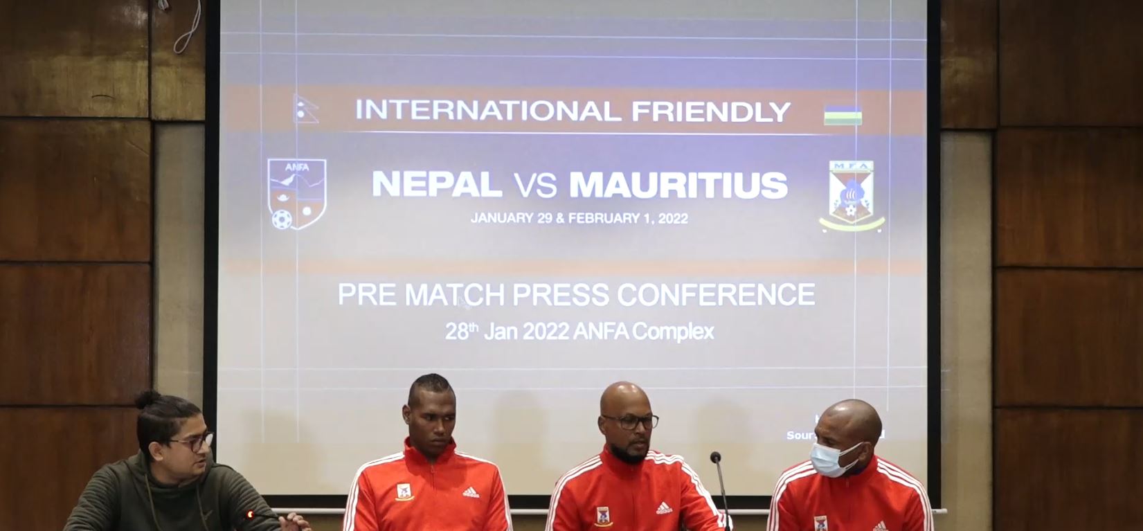नेपाली राष्ट्रिय टोलीले पश्चिम अफ्रिकी देश मौरिसससँग दशरथ रंगशालामा खेल्ने तय भएको दुईमध्ये पहिलो अन्तर्राष्ट्रिय मैत्रीपूर्ण खेल शनिबार हुँदैछ । खेल अघि दुवै टीमले जीतको लक्ष्यका साथ मैदान उत्रने बताएका छन् । मैत्रीपूर्ण खेल अघि शुक्रबार एन्फा कम्प्लेक्स सातदोवाटोमा भएको प्री म्याच कन्फ्रेन्समा नेपाली राष्ट्रिय फुटबल टिमका कप्तान किरन चेम्जोङले मरिससविरुद्धको मैत्रीपूर्ण खेलमा छुट्टै अनुभव हुने बताउनुभयो । उहाले मैत्रीपूर्ण खेल भएपनि सकारात्मक नजिताको अपेक्षा रहेको बताउनुभयो । चेम्जोङले नेपाली टोली खेलका लागि तयार रहेको समेत बताउनुभयो । सबै खेलाडीहरु लिग खेलेर राष्ट्रिय टिममा आउनु भन्दै उहाले सवै फिट देखिएरहेको बताउनुभयो । नेपालका सहायक प्रशिक्षक किरण श्रेष्ठले पहिलो खेलका लागि नेपालले सबै तयारी पुरा गरिसकेको भन्दै नेपालले पहिलाको गल्तिलाई सुधारेर प्रदर्शन गर्ने बताउनुभयो । त्यस्तै मरिसस फुटबल टोलीका प्रशिक्षक टोनी फ्रान्कोइसले नेपालविरुद्धको मैत्रीपूर्ण खेलमा राम्रो प्रदर्शन गर्ने अपेक्षा रहेको बताउनुभयो । मरिससले पछिल्ला साढे दुई बर्षदेखि खासै खेलहरु खेल्न पाएको नपाएपनि अहिलेको खेलका लागि ४५ दिनको अभ्यास गरेका जानकारी दिनुभयो । कोरोना महामारीका बीच स्वास्थ्य सुरक्षा मापदण्ड पालना गरी दर्शकसहित अन्तर्राष्ट्रिय फुटबलको आयोजनाका लागि अखिल नेपाल फुटबल संघ एन्फाले तयारी पूरा गरेको छ । करिव १५ हजार दर्शक क्षमताको दशरथ रंगशालामा बढीमा ५ हजार दर्शकले प्रवेश पाउनेछन् । प्रशिक्षक अल्मुताइरीले बन्द प्रशिक्षणमा रहेका ३४ जना खेलाडीलाई नै समेटेर राष्ट्रिय टोली निर्माण गरेका छन् । दुई खेलका लागि फरक फरक टोली बनाएर प्रशिक्षक अल्मुताइरीले नयाँ प्रयोग गरेका छन् । मौरिससको फिफा वरीयता १७२ र नेपालको १६९ छ ।
