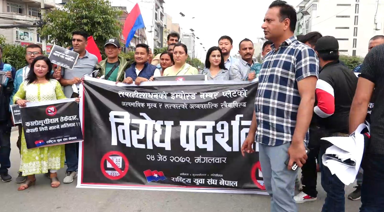 युवा संघ नेपालले सवारीसाधनको इम्बोस्ड नम्बर प्लेट जडानमा सर्वसाधारणलाई अस्वभाविक दवाव दिएको भन्दै काठमाडौंमा प्रदर्शन गरेका छन् । युवा संघ नेपालले काठमाडौंको बानेश्वरस्थीत यातायात व्यवस्था बिभाग अगाडी इम्बोस्ड नम्बर प्लेट खारेज हुनुपर्ने भन्दै बिरोध प्रर्दशन गरेका हुन् । सवारीसाधनको इम्बोस्ड नम्बर प्लेटमा दवाव दिएको र उक्त नम्वर प्लेटको अत्याधिक मूल्यबिरुद्ध प्रदर्शन गरिएको युवा संघले जनाएको छ । प्रदर्शनमा सहभागीहरुले इम्बोस्ड नम्बर घोटाला हो, इम्बोस्ड नम्बर चाहिँदैन, ठेकेदारलाई दुई बर्ष थप लगायतका प्लेकार्ड प्रदर्शन गरेका थिए । प्रदर्शनका क्रममा उनीहरुले सरकारी सवारी साधनलाई रोक्न खोजेपछि प्रहरीले लाठीचार्ज गरेको थियो । इम्बोस्ड नम्बर प्लेट जडानका बिषयमा तीव्र आचोचना भएपछि बिभागले भने साउन १ देखि सबै सवारी साधनमा इम्बोस्ड नम्बर प्लेट अनिवार्य गर्न नखोजिएको जनाएको छ ।