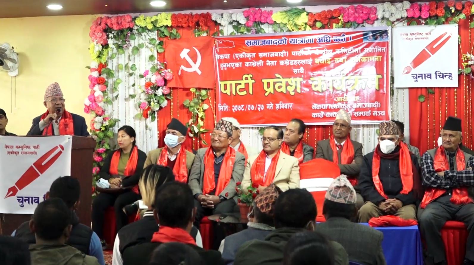 नेकपा एकीकृत समाजवादीका अध्यक्ष माधव कुमार नेपालले एमालेमा रहेका केहि नेताहरुको बिजोग भएको तर्क गर्नुभएको छ । समाजवादी काभ्रे काठमाडौं सम्पर्क मञ्चले शनिबार काठमाडौंमा गरेको कार्यक्रममा अध्यक्ष नेपालले एमाले अध्यक्ष केपी ओली सुध्रिन्छन् कि भनेर एमालेमा बसेका नेताहरुको बिजोग भएको तर्क गर्नुभएको हो । उहाले अहिले पनि एमाले भित्र ओलीले गुट नै चलाईरहेको धारणा पनि राख्नुभयो । नेपालले केहि नेताहरु समाजवादीमा फर्कने क्रम सुरु भइरहेको दावी गर्नुभयो । पुराना पार्टीसंगै बिद्रोह गरेर बनेको पार्टीमा जनलहर र उत्साह देखिएको उहाले बताउनुभयो । उहाले आउने राष्ट्रिय सभा निर्वाचनमा मिलेर जाने सहमति गठबन्धनबीच भएको भन्दै अवको निर्वाचनमा एमालेको पत्तासाफ हुने उल्लेख गर्नुभयो । अवको निर्वाचनमा कलम चिन्हका साथ जनतामाझ जाने र जनताले विश्वास गर्ने उहाको भनाई छ । कार्यक्रममा बिभिन्न दलबाट आएका व्यक्तिहरुलाई अध्यक्ष नेपालले समाजवादी प्रवेश गराउनुभएको थियो ।