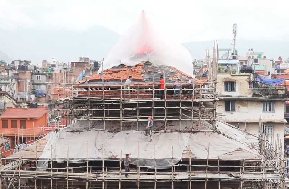 काठमाडौंको बसन्तपुरस्थित ऐतिहासिक तथा पूरातात्विक महत्वको सम्पदा काष्ठमण्डपको छानो छाउने काम सुरु गरिएको छ । २०७२ साल बैशाख १२ गते आएको विनाशकारी भूकम्पले ध्वस्त बनाएको सो सम्पदाको पुनर्निर्माणको काम अन्तिम चरणमा पुगेपछि छानो छाउने काम सुरु गरिएको हो । सातौं शताब्दीमा बनेको सो सम्पदामा मौलिक प्रविधिकै प्रयोग गरेर झिंगटीको छानो छाउने काम सुरु गरिएको काष्ठमण्डप पुनर्निर्माण समितिका अध्यक्ष राजेश शाक्यले जानकारी दिनु भयो । उहाँले सो सम्पदाको पुनर्निर्माणको काम सम्पन्न गर्न अझै केही महिना लाग्ने पनि स्पष्ट पार्नु भयो । समितिले पूरानै मौलिकतालाई कायम राखेर सो सम्पदा पुनर्निर्माणको काम सम्पन्न गरेर विश्वलाई नै नमूना उदाहरण पेश गर्न सक्षम हुने दावी समेत गरेको छ ।