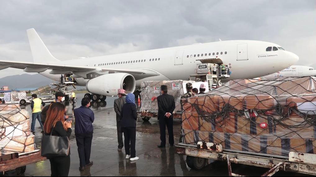 बुधबार नै यूएईले पनि नेपाल सरकारलाई कारोना भाइरस संक्रमणका बिरामीलाई उपचार गर्न प्रयोग गरिने स्वास्थ्य सामग्रीहरु उपलब्ध गराएको छ। यूएईले करिब 9 टन स्वास्थ्य सामग्री नेपालाई उपलब्ध गराएको हो। यूएईबाट इतिहादको वाइडबडी विमान चार्टर गरी उक्त सामग्री नेपाल आइपुगेको हो।