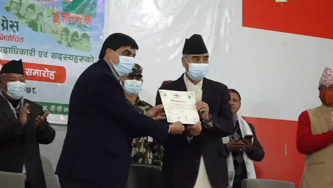 नेपाली कांग्रेसको १४औँ महाधिवेशबाट निर्वाचित सभापतिसहितका पदाधिकारी र सदस्यलाई निर्वाचित भएको प्रमाणपत्र प्रदान गरिएको छ । पार्टी सभापति एवं प्रधानमन्त्री शेरबहादुर देउवासहितका पदाधिकारी र सदस्यलाई पार्टी केन्द्रीय कार्यालय सानेपामा शनिबार आयोजित समारोहमा पार्टीको केन्द्रीय निर्वाचन समितिका संयोजक वरिष्ठ अधिवक्ता गोपालकृष्ण घिमिरेले महाधिवेशनबाट निर्वाचित भएको प्रमाणपत्र प्रदान गर्नुभयो । कार्यक्रममा नवनिर्वाचित सभापति देउवाले सबैको भावनालाई कदर गरेर पार्टी सञ्चालन गर्ने भन्दै सहयोग गर्न आग्रह गर्नुभयो । काग्रेस वास्तविक रुपमा नै लोकतान्त्रीक रहेको र जनतासंग भिजेको पार्टी रहेको उहाको भनाई छ । सभापति देउवाले कांग्रेस देशकै सबैभन्दा समावेशी पार्टी बनेको र तल्लो तहदेखि नै महिला, आदिवासी, जनजाति, दलित, मुस्लिम, थारु लगायत सबैलाई नेतृत्वमा अवसर दिइएको जिकिर गर्नुभयो । पदाधिकारी र सदस्यलाई प्रमाणपत्र प्रदान गरिएसँगै नेपाली कांग्रेसको १४औँ महाधिवेशन औपचारिकरुपमा समापन भएको छ । गत मंसिर २४ देखि २८ गतेसम्म सम्पन्न महाधिवेशनअन्तर्गत भएको निर्वाचनबाट केन्द्रीय कार्यसमितिका १३४ पदाधिकारी र सदस्य निर्वाचित भएका थिए । यसबाहेक नयाँ विधानअनुसार सभापतिले ३३ जना मनोनित गर्न बाँकी छ ।