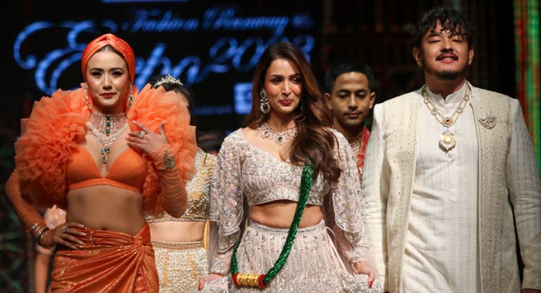 विहिबार काठमाडौमा आयोजित फेसन रनवेमा बलिउड सेलिव्रिटी तथा फेसन आइकन मलाइका अरोरादेखि नेपाली अभिनेत्रीसम्मले सौन्दर्यको जादू छरेका छन् । होटल याक एण्ड यतिमा आयोजित जेम एण्ड ज्वेलरी फेसन रनवेमा मोडलहरुले गहना र फेसन डिजाइनलाई प्रस्तुत गरेका हुन् । मलाइका उक्त फेसन रनवेमा प्रमुख शो स्टपरको रुपमा प्रस्तुत भएकी थिइन् । नेपाली डिजाइनरका आकर्षक लेहेंगा र हीराको हार, औंठी, ब्रासलेटमा मलाइका आकर्षक देखिएकी थिइन् । मलाइकालाई रनवेमा नेपाली अभिनेत्रीहरु स्वस्तिमा खड्का, उपासनासिंह ठकुरी, मलिका महत, पूर्वमिस नेपालहरु अनुष्का श्रेष्ठ र इभाना मानन्धरले साथ दिएका थिए । रनवेमा नेपाली मोडलहरु रत्न र आभूषण जडित गहना लगाएर र्याम्प नापेका थिए । कार्यक्रममा गायिका सुवानी मोक्तानले सांगीतिक प्रस्तुति दिएकी थिइन् । बलिउड अभिनेत्री समेत रहेकी मलाइका फेसन शोमा सहभागि हुन विहिबार बिहान काठमाडौं आएकी थिइन्। नेपाल रत्न तथा आभूषण संघले आयोजना गरेको एक्स्पो शुक्रबारदेखि तीन दिनसम्म संचालन हुँदैछ जहाँ दर्शकले निःशुल्क सहभागिता जनाउन सक्नेछन् । नेपाली रत्न तथा आभूषणलाई विश्वमाझ चिनाउने उद्देश्यले तीन दिने एक्स्पो आयोजना गरिएको हो ।