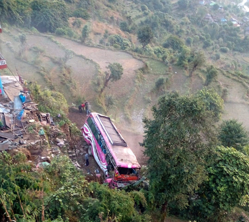 सुनौलीबाट म्याग्दीका लागि छुटेको यात्रुवाहक बस मंगलबार बिहान कास्कीमा दुर्घटना भएको छ। लु१ख ७७६८ नम्बरको बस कास्कीको अन्नपूर्ण गाउँपालिका–३ पाउदुरमा बिहान ६ बजेर ५० मिनेटमा सडकबाट अन्दाजी ३० मिटर तल खसेको बस दुर्घटना हुँदा चालकको मृत्यु भएको छ भने ४६ वर्षीय भुपेन्द्र भन्ने पाल्पा घर भएका भुपनाथ खनालको बसले च्यापिएर मृत्यु भएको जिल्ला प्रहरी कार्यालयले जनाएको छ । दुर्घटनामा परि ८ जना घाइते भएका छन् ।