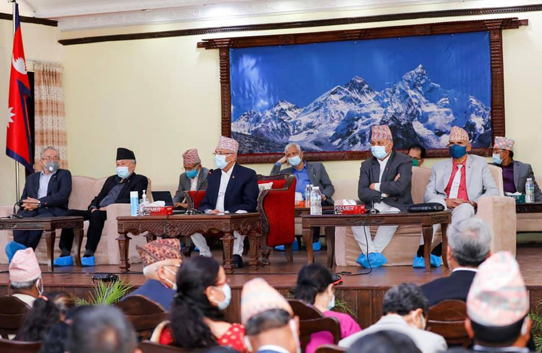 उहाँले भन्नुभयो ‘त्यसको बारेमा पनि अलिकति जानकारी गराउनुभयो प्रधानमन्त्रीले । अस्तिनै बैठकले त्यस बारेमा छलफल गरेर प्रस्ताव तयार गर्नको निम्ति स्थायी कमिटीलाई भनेको हुनाले आवश्यक निर्णय चाहिं आगामी दिनमा हुँदै जानेछन् । अलिकति स्थितिको हामीले समिक्षा ग¥यौँ । अहिले अविश्वासको प्रस्ताव त्याउने कोसिसहरु पनि भइरहेको छ । प्रतिपक्षले ल्याउने कुरा त धेरै ठुलो कुरा भएन । तर कर्णालीको जस्तै विभिन्न ठाउँमा फ्लोर क्रसहरु गराउन पनि प्रयासहरु हुँदै गरेका त्यस्ता प्रयासहरु पनि छन्, तिनीहरुको बारेमा हामीले आवश्यक जानकारीहरु लिइरहेका छौँ आवश्यक निर्णयहरु पछाडी उपयुक्त समयमा गरिनेछ ।’