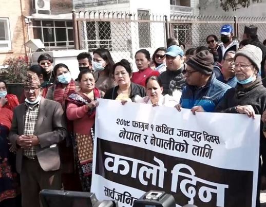 सरकारले फागुन १ गते जनयुद्ध दिवसको नाममा सार्वजनिक बिदा दिएकोप्रति विरोध प्रदर्शन भएको छ । सरकारले जनयुद्ध दिवस भन्दै सोमवार सार्वजनिक बिदा दिएकोप्रति द्वन्द्व पीडित समुदाय र नागरिक समाजले विरोध प्रदर्शन गरेका हुन् । काठमाण्डाै जिल्ला अदालत अगाडि भेला भएर नागरिक समाज, मानव अधिकारवादी सङ्घ–संस्थासँग आबद्ध व्यक्तिहरू र द्वन्द्व पीडितले सरकारको निर्णयको विरोध गरेका हुन् । उनीहरूले जनयुद्ध दिवसको नाममा दिइएको सार्वजनिक बिदा खारेज गर्नुपर्ने र द्वन्द्व पीडितलाई न्याय दिनुपर्ने माग राखेका छन् ।