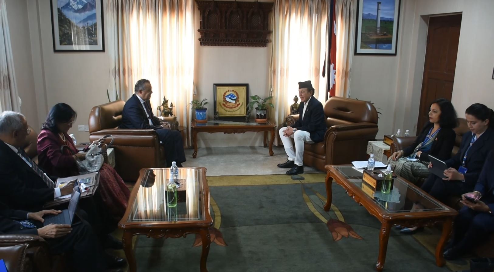 नेपाल भ्रमणमा रहनुभएका विश्व स्वास्थ्य संगठन (डब्लुएचओ) का महानिर्देशक डा टेड्रोस अधानोम गेब्रेयसस र स्वास्थ्यमन्त्री विरोध खतिवडाबीच भेटवार्ता भएको छ । बिहीबार मन्त्रालयमा भएको भेटमा मन्त्री खतिवडाले महानिर्देशक डा टेड्रोसले दोस्रो कार्यकालका लागि दिएको उम्मेदवारीमा नेपालको समर्थन रहेको बताउनुभएको थियो । मन्त्री खतिवडाले नेपाली जनताको स्वास्थ्य आवश्यकताहरू सम्बोधन गर्न नेपाल सरकारलाई सहयोग गरेकोमा धन्यवाद दिनुभयो । उहाले  औषधिको गुणस्तर नियन्त्रण र पहुँच, उन्नत प्रयोगशाला, नियामक क्षमता, मानव संशाधन विकास, प्रविधि स्थानान्तरण र चिकित्सा अनुसन्धान तथा निदानलगायतका क्षेत्रमा नेपाललाई डब्लुएचओबाट सहकार्य आवश्यक रहेको धारणा राख्नुभयो । मन्त्री खतिवडाले नेपालले स्वास्थ्य सेवाहरूमा सबैको समतामुलक पहुँच अभिवृद्धि गर्न एकीकृत राष्ट्रिय स्वास्थ्य वित्तीय रणनीति तर्जुमा गर्ने योजना बनाएको जानकारी दिनुभएको थियो । भेटका क्रममा महानिर्देशक टेड्रोसले नेपाललाई डब्लुएचओको साथ निरन्तर रहने बताउनुभएको थियो । त्यस्तै बिहीबार नै महानिर्देशक टेड्रोसले परराष्ट्रमन्त्री डा नारायण खड्कासंग पनि भेटवार्ता गर्नुभयो । सिंहदरबारमा भएको भेटमा दुईपक्षिय हितका बारेमा छलफल भएको बताइएको छ ।