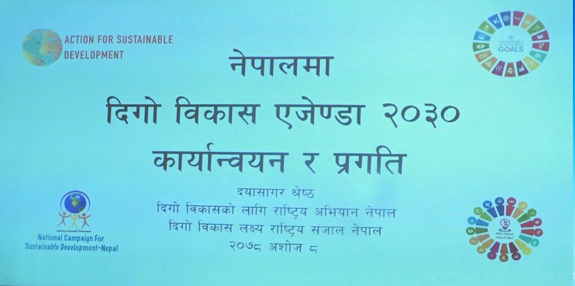 दिगो विकास लक्ष्य सुरु भएको ६ वर्ष हुन लाग्दा पनि जनप्रतिनिधिको तहमै जानकारी नभएका कारण कार्यान्वयनमा चुनौती देखिएको बिज्ञहरुले जनाएका छन् । शुक्रबार महिला, कानून र विकास मञ्चले काठमाडौंमा आयोजना गरेको दिगो विकास लक्ष्य कार्यान्वयनका बिषयमा गरेको छलफलका क्रममा उनीहरुले दिगो विकास लक्ष्यका बिषयमा राजनीतिक अपनत्व र प्रतिबद्धता नहुँदा पनि कार्यान्वयनमा समस्या भएको समेत बताएका हुन् । कार्यक्रममा दिगो विकास लक्ष्य राष्ट्रिय सञ्जाल नेपालका संयोजक दयासागर श्रेष्ठले जनप्रतिनिधिलाई जानकारी नहुँदा तहगत रुपमा समन्वय र योजना छनोट हुन नसकेको धारणा राख्नुभयो । दिगो विकास लक्ष्यका १७ वटा लक्ष्यमध्ये शान्ति स्थापना, समावेशी र सामाजिक लगाएतका केहि लक्ष्यको प्रगति निराशाजनक रहेको संयोजक श्रेष्ठले बताउनुभयो । दिगो विकास लक्ष्यअनुसार सन् २०३० सम्ममा गरिबीलाई पाँच प्रतिशतमा झार्ने उल्लेख छ । दिगो विकास लक्ष्य प्राप्तिका लागि वार्षिक रु ६ खर्ब थप बजेट आवश्यक पर्ने समेत बिज्ञहरुले बताएका छन् ।