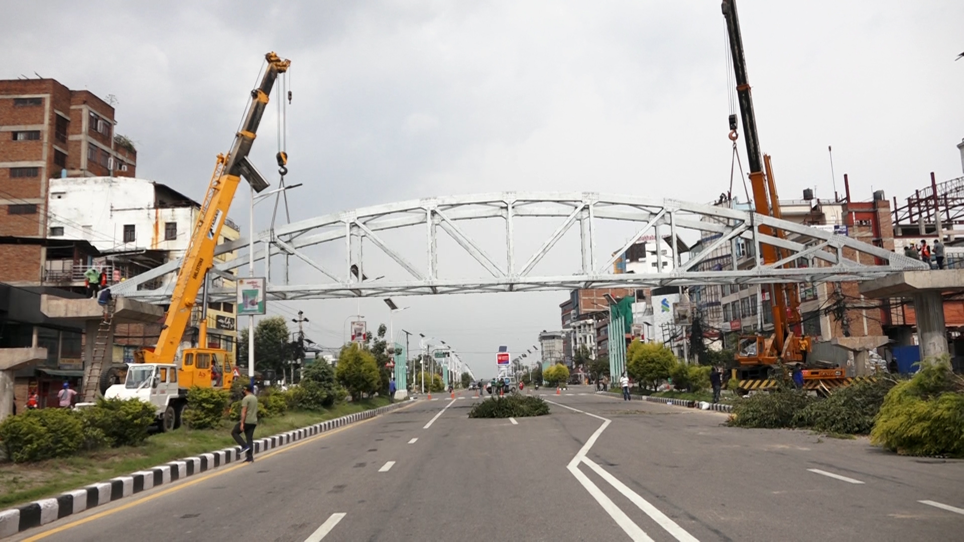 काठमाडौंको अति व्यस्त चोकमध्यको एक नयाँ बानेश्वर चोकमा आकाशे पुलको ट्रस्ट राखिएको छ । संघीय संसद भवन नजिकै रहेको चोकमा कार्यालय समयमा र साँझको समयमा बाटो काट्ने यात्रीले सास्ती खेप्दै आएका छन् । बुधबार अपरान्ह भुइँमा बनाइएको फलामको ट्रस्टलार्य आकाशेपुलको पिल्लरमा जोडिएको छ । बानेश्वर चोकबाट पश्चिमतर्फ ५० मिटरको दुरीमा रहेको यो पुलले दैनिक १५ हजार जना व्यक्तिलाई वारीपारी गर्न सहज बनाउने छ । यस्तै भुइँमा सडक ट्राफिकलाई समेत सहज बनाउने छ । आकाशे पुल निर्माण अनुगमन गरिरहेको काठमाडौं सडक डिभिजन कार्यालयका प्रमुख कुवेर नेपालीले यो पुल यसै आर्थिक वर्षमा निर्माण सम्पन्न भइ प्रयोगमा आउने बताउनुभयो । ३८ मिटर लम्बाईको यो पुल मान्छे मात्र वारपार गर्न मिल्ने गरी बनाइएको छ । यो पुलको निर्माण लागत ३ करोड १० लाख रहेको छ । मान्छे हिड्ने फुटपाथको चौडाइ ३ मिटरको छ भने यो पुल जमिनबाट ५ मिटर माथि रहेको छ ।