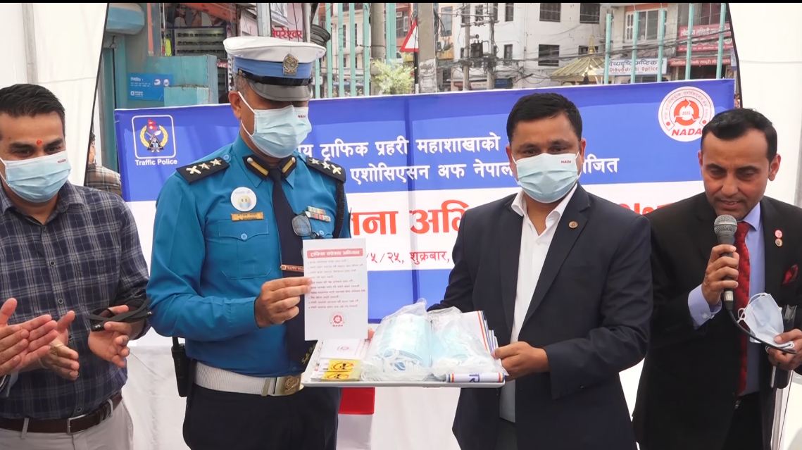 अटोमोवाइल्स एशोसिएसन अफ नेपाल (नाडा)ले ट्राफिक सचेतना अभियान सञ्चालन गरेको छ। महानगरीय ट्राफिक प्रहरी महाशाखाको सहकार्यमा नाडाले शुक्रबार काठमाडौंमा ट्राफिक सचेतना अभियान सञ्चालन गरेको हो । नाडाले ट्राफिक प्रहरीलाई पाँच हजार थान मास्क र १० हजार थान स्टिकर हस्तान्तरण पनि गरेको छ । ट्राफिक प्रहरीसँगै मिलेर त्रिपुरेश्वरमा यातायातका साधनहरुमा ट्राफिक सन्देश बोकेका स्टिकरहरु टाँस्ने लगायतको जनचेतनामूलक काममा सहभागी भईएको नाडाका अध्यक्ष कृष्णप्रसाद दुलालले बताउनुभयो । अभियानमा हर्न निषेध, ट्राफिक नियम पालना गरौँ लगायतको स्टिकर सवारी साधनमा टाँसिएको थियो । महानगरीय ट्राफिक प्रहरी महाशाखाका एसपी संजिव शर्माले मास्क लगाउनकालागि ट्राफिक प्रहरीले विभिन्न संघसंस्थाको सहकार्यमा निरन्तर अभियान चलाइरहेको बताउनुभयो । महानगरीय ट्राफिक प्रहरी महाशाखाले हर्न नबजाउन र अनिवार्य रुपमा मास्क लगाउन सबैलाई अनुरोध गर्दै आएको छ ।