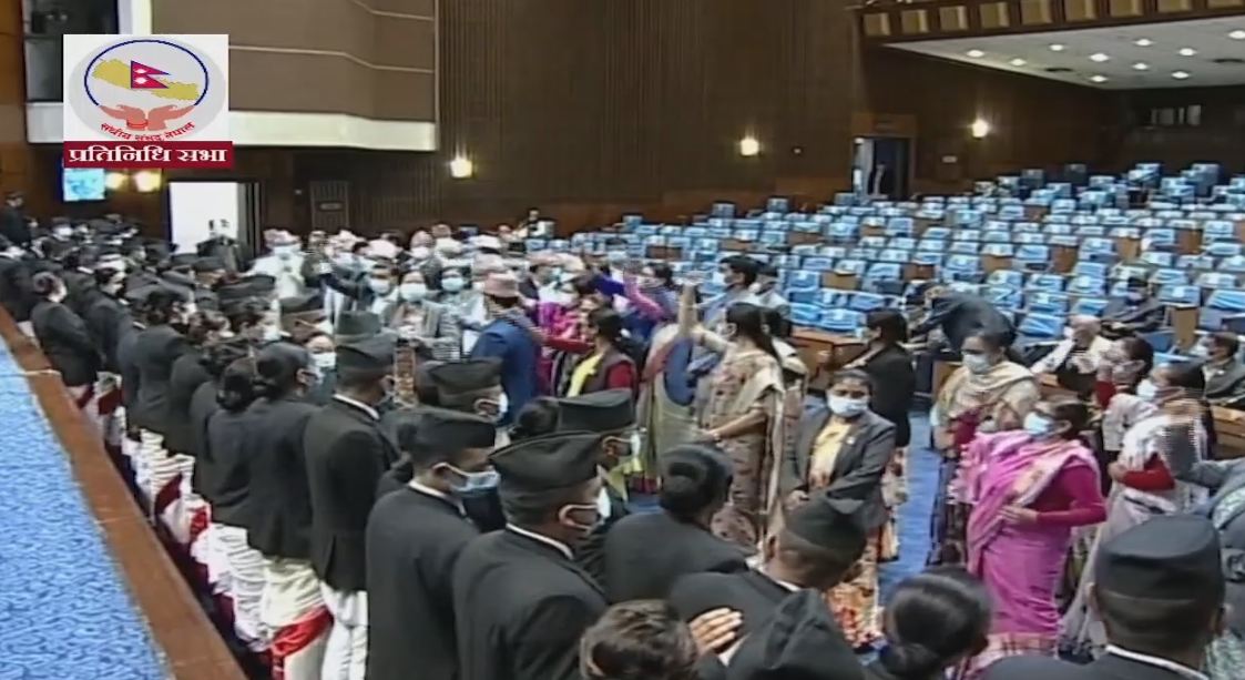 प्रमुख प्रतिपक्षी नेकपा एमालेले बिहीबार पनि प्रतिनिधिसभा बैठकमा नारावाजीसहित बिरोध जनाएका छन् । संघीय संसद भवन नयाँ बानेश्वरमा बिहीबार बैठक सुरुहुने बितिकै एमालेका सांसदहरुले उठेर बिरोध गर्दै रोष्टम घेराउ गर्न पुगेका थिए । सो क्रममा उनीहरुले एमालेले कारवाही गरेका सांसदहरुलाई सदनमा प्रवेश गराएको भन्दै नारावाजी गरेका थिए । बिरोधपछि सभामुख अग्नि सापकोटाले सहज रुपमा सभा सञ्चालन गर्नका लागि सहयोग गर्न अनुरोध गर्नुभएको थियो । उहाले अदालतमा विचाराधीन विषयमा संसदमा छलफल नहुने भन्दै ध्यानाकर्षण गराउनुभएको थियो । एमालेका सांसदहरुको बिरोधकाबीच सभामुख सापकोटाले राष्ट्रपति कार्यालयबाट अध्यादेश खारेज तथा बिधेयक प्रमाणीकरणसम्बन्धी पत्र पढेर सुनाउनुभएको थियो । त्यस्तै बैठकमा प्रधानमन्त्रीको तर्फबाट कानूनमन्त्री ज्ञानेन्द्र बहादुर कार्कीले महालेखा परीक्षकको ५८ औं बार्षिक प्रतिवेदन पेश गर्नुभएको थियो । प्रतिनिधिसभाको अर्को बैठकमा असोज १९ गते मंगलबार बोलाइएको छ । माधव नेपाल लगायत १४ सांसदलाई पदमुक्त गर्न गरिएको सिफारिस सभामुखले कार्यान्वयन नगरेको भन्दै एमालेले निरन्तर रुपमा प्रतिनिधिसभा बैठकमा बिरोध गरिरहेको छ ।