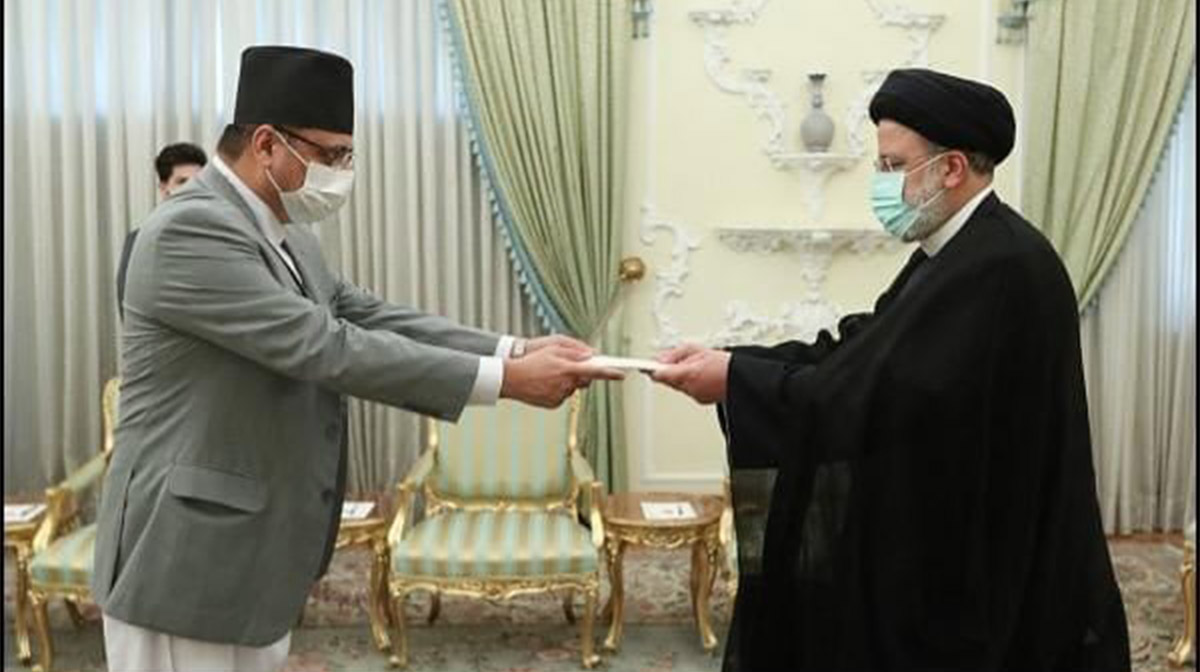 इरानका लागि गैरआवसीय नेपाली राजदूत तापस अधिकारीले त्यहाँका राष्ट्रपति इब्राहिम रईसीसमक्ष ओहोदाको प्रमाणपत्र बुझाएका छन् । सोमबार आयोजित विशेष समारोहमा इरानको राष्ट्रपति भवनमा राजदूत अधिकारीले राष्ट्रपति रईसीसमक्ष ओहोदाको प्रमाण पत्र बुझाएका हुन् ।अधिकारी पाकिस्तानका लागि नेपाली राजदूत हुन् । इरानका राष्ट्रपति रईसीले ओहोदाको प्रमाणपत्र ग्रहण गर्दै नेपाली जनताको प्रगति र समृद्धिको कामना गरेका छन्। सो क्रममा नेपाल र इरानबीचको सम्बन्धलाई थप उचाईमा पुर्याउन आफूले इमान्दार भएर काम गर्ने बताएका छन् । राजदूत अधिकारीले साझा मुद्धाका विषयमा अन्तर्राष्ट्रिय मञ्चमा नेपाल र इरान मिलेर काम गरिरहेको राष्ट्रपति रईसीलाई स्मरण गराएका थिए ।