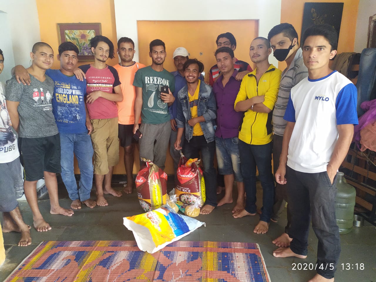 उनिहरू काम गर्ने होटल बन्द भएको र मालिकले दिएको खर्च र राशन पनि सकिएको भन्दै जानकारी पाएपछि नेपाली जनसम्पर्क समिति दक्षिण-पश्चिम क्षेत्रीय परिवारको सहयोगमा क्षेत्रीय महासचिव देवेन्द्र बोगटीको नेतृत्वमा उनिहरूलाई चामल, दाल, तेल र नुनलगायतको खाद्य सामग्री वितरण गरिएको हो। क्षेत्रीय महासचिव देवेन्द्र बोगटी आफै मोइनाबाद पुगेर उनिहरूलाई सहयोग गर्नुभएको हो।