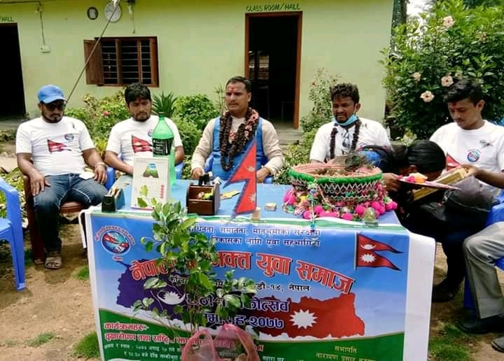 सामाजिक सेवा खासगरि देशहितमा खबरदारी र राष्ट्रीय एकताका लागि काम गर्दै आएको संगठन नेपाली देशभक्त युवा समाजले शनिबार आफ्नो छैठौं वार्षिकोत्सव मनाएको छ । राजधानीको माईतिघर मन्डलामा नेपालकै सबै भन्दा ठूलो राष्ट्रीय झन्डा फहराएर देशभक्तिको ठूलो नमूना पेश गरेको नेपाली देशभक्त युवा समाजले आज कैलाली जिल्लाको बौनिया बर्दगोरीया गाउपालिकास्थित सहारा घरमा राष्ट्रीय झण्डा फहराउनुका साथै सहारा घरका असहाय व्यक्तिहरुलाई भोजन गराएर मनाएको छ । कोभिड-19 महामारीका कारण कार्यक्रम भव्यताका साथ मनाउने अवस्था नरहेपछि समाजले असहाय व्यक्तिरुलाई सेवा गरि वार्षिकोत्सव मनाएको हो ।