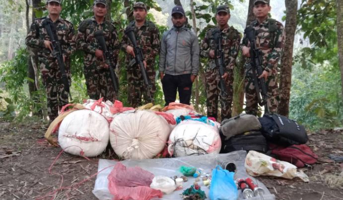 पर्सा राष्ट्रिय निकुञ्ज सुरक्षार्थ तैनाथ नेपाली सेनाको टोलीले अवैध लागूऔषध तथा एम्युनिशन/एक्सप्लोसिभ बरामद गरेको छ । राष्ट्रिय निकुञ्ज सुरक्षार्थ तैनाथ श्री सिद्धिबक्स गणबाट निकुञ्जध प्रशासनका कर्मचारीसहित परिचालित भएको एलआरपी टोलीले बुधबार फेला पारेको जनाएको छ । सेनाले बरामद भएको सामान निकुञ्जु प्रशासनलाई बुझाएको छ । लालभित्ति, शितलपुर खोला चुरे ईलाकामा अवैध रुपमा प्रवेश गरेका ६/७ जना समूहका मानिसहरुलाई पक्राउ गर्ने क्रममा उक्त मानिसहरु लागूऔषध, एम्युनिशन/एक्सप्लोसिभ तथा अन्य सामानहरू छाडी फरार भएकाले सामान मात्रै बरामद भएको जनाइएको छ । सेनाले करीब २०० केजी गाँजा, ३९ वटा भरुवा बन्दुकको गोली, २०० ग्राम बारुद, १६ वटा बम पटका, करीब २ केजी गन्धक, १ थान प्याकिङ्ग डब्बा भएको सेफ सोली, दुई वटा टर्चलाइट, एउटा चार्जर र कपडा राखिएको झोला ४ वटा बरामद गरेको जनाए ।