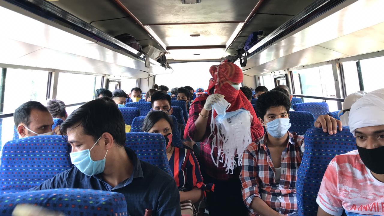 भारतबाट नेपाल जाने यात्रुहरुको संख्या दैनिक रुपमा बढ्न थालेपछि नेपालमा कोरोना संक्रमण बढ्ने सम्भावना पनि बढेको छ । यही विषयलाई ध्यान दिँदै नेपाली जनसम्पर्क समिति उत्तर भारत क्षेत्रले नेपाल जान लागेका नेपाली यात्रु र बसको चालक दलका सदस्यहरुलाई कोभिड-19 को संक्रबाट बच्ने उपायहरुको पालना गर्दै सुरक्षित रुपमा नेपाल पुग्न सुझाव सल्लाह दिएको छ । नेजस उत्तर भारतकी अध्यक्ष सुनिता जीसी कुँवर हिजो गाजियाबादबाट नेपालको गुल्मी जान लागेका नेपालीहरु भएको स्थानमा पुगेर मास्क लगायतका सामग्री वितरण गरि कोरोना भाईरस संक्रमणको जोखिमलाई कम गर्दै सुरक्षित नेपाल पुग्न भन्नु भएको छ । भारतमा रहेका नेपालीहरुलाई नेपाल जानबाट रोक्न नसकिने भएकाले आफुहरुले सामाजिक दुरी, मास्कको प्रयोग लगायतका सावधानीका उपायहरु अवलम्बन गर्न सबै यात्रु र चालक दललाई पनि आग्रह गरेको बताउनुभयो । हिजो गाजियाबादबाट गुल्मी जिल्लाका 83 जना नेपालीहरु नेपालका लागि हिँडेका थिए भने आज उनिहरु सीमाबाट नेपाल प्रवेश गरेको कुँवरले बताउनुभयो ।