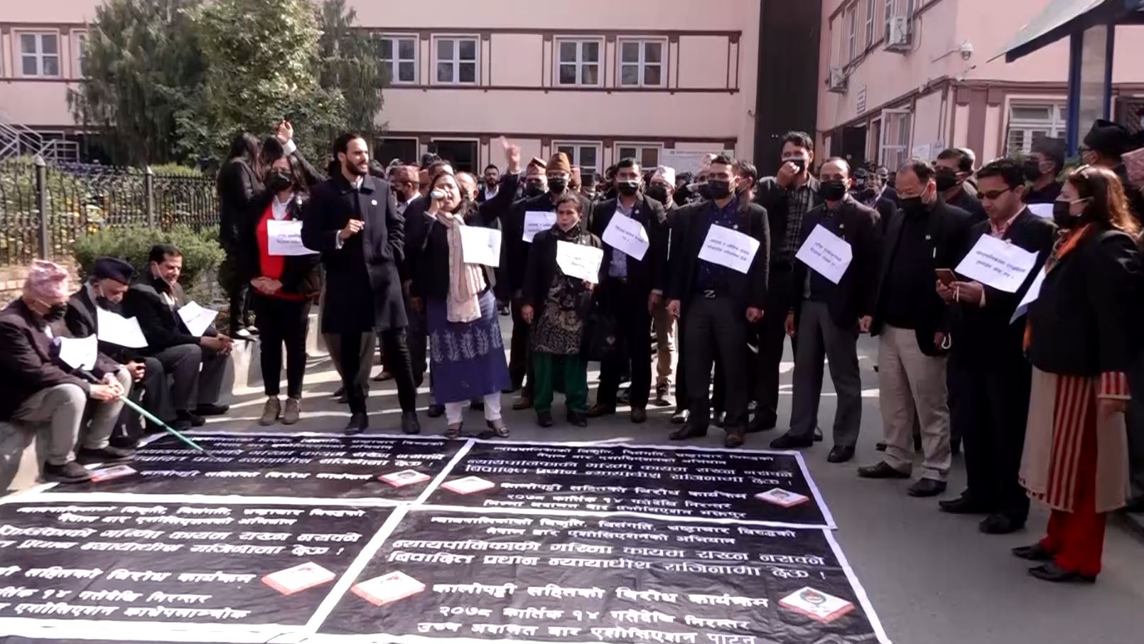 प्रधानन्यायाधीश चोलेन्द्रशम्शेर जबराको राजीनामा माग गर्दै नेपाल बार एसोसिएसनले बुधबार पनि सर्वोच्च परिसरमा धर्ना दिएका छन् । धर्नाका क्रममा सहभागी अधिवक्ता, वलिकहरुले प्रधानन्यायधिशबिरुद्ध चर्का नारा लगाएका थिए । उनीहरुले प्रधानन्यायधिशको राजीनामा नआएसम्म आन्दोलन नरोकिने चेतावनी दिएका थिए । सर्वोच्चमा धर्ना दिएपछि बारका पदाधिकारीहरु उच्च अदालत पाटनमा धर्नाका लागि पुगेका थिए । बारको आन्दोलन अन्तर्गत बुधबार देशभरका उच्च अदालतमा प्रर्दशन भएको छ । उपत्यकाको उच्च अदालत पाटनसहित देशभरका १८ उच्च अदालतमा बारले २ घन्टा कालोपट्टीसहितको धर्ना र विरोध कार्यक्रमको आयोजना गरेको हो । बारले बिहीबार काठमाडौंमा सर्वोच्चदेखि बालुवाटारसम्म मार्चपास गर्ने जनाएको छ ।