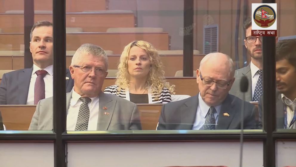 राष्ट्रियसभाका अध्यक्ष गणेश प्रसाद तिमिल्सिनाको निमन्त्रणामा नेपाल भ्रमणमा रहेको क्यानडाको उपल्लो सदन(सिनेट)का सभामुख जर्ज जे फ्युरी नेतृत्वको संसदीय प्रतिनिधिमण्डले सोमबार राष्ट्रिसभाको अवलोकन गरेको छ। राष्ट्रियसभाको बैठकको सुरुमै अध्यक्ष गणेश तिमिल्सिनाले नेपाल भ्रमणमा रहेको क्यानडाको उपल्लो सदन(सिनेट) का सभामुख जर्ज जे फ्युरी नेतृत्वको संसदीय प्रतिनिधिमण्डललाई बैठकमा स्वागत गर्नुभएको थियो। जे फ्युरी नेतृत्वको संसदीय प्रतिनिधिमण्डलले विशिष्ट दिर्घामा बसेर राष्ट्रियसभा संञ्चालनको अवलोकन गरेको थियो। सोमबारको बैठकमा दलिय आधारमा बोल्दै राष्ट्रियसभाका सदस्यले फ्युरी नेतृत्वको संसदीय प्रतिनिधिमण्डलको स्वागतार्थ मन्तव्य दिएका थिए। नेकपाका राष्ट्रियसभाका प्रमुख सचेत दिनानाथ शर्माले क्यानडाको संसदीय प्रतिनिधिमण्डलाई स्वागत गर्दै नेपाल बसाई सुखमय वितोस् भन्ने कामना गर्नुभयो। उहाँले क्यानडाको राजनीतिक र संसदीय प्रणालीको चर्चा गर्दै नेपालको संसदीय र राजनीतिक प्रणालीका धेरै विशेषता र मौलिकता क्यानडासंग मिल्दो रहेको बताउनुभयो। राष्ट्रियसभाले सबै जातजाति र समुदायको प्रतिनिधित्व गरेकाले राष्ट्रियसभा सप्तरंगी इन्द्रेणीको रुपमा अवस्थित रहेको बताउनुभयो।