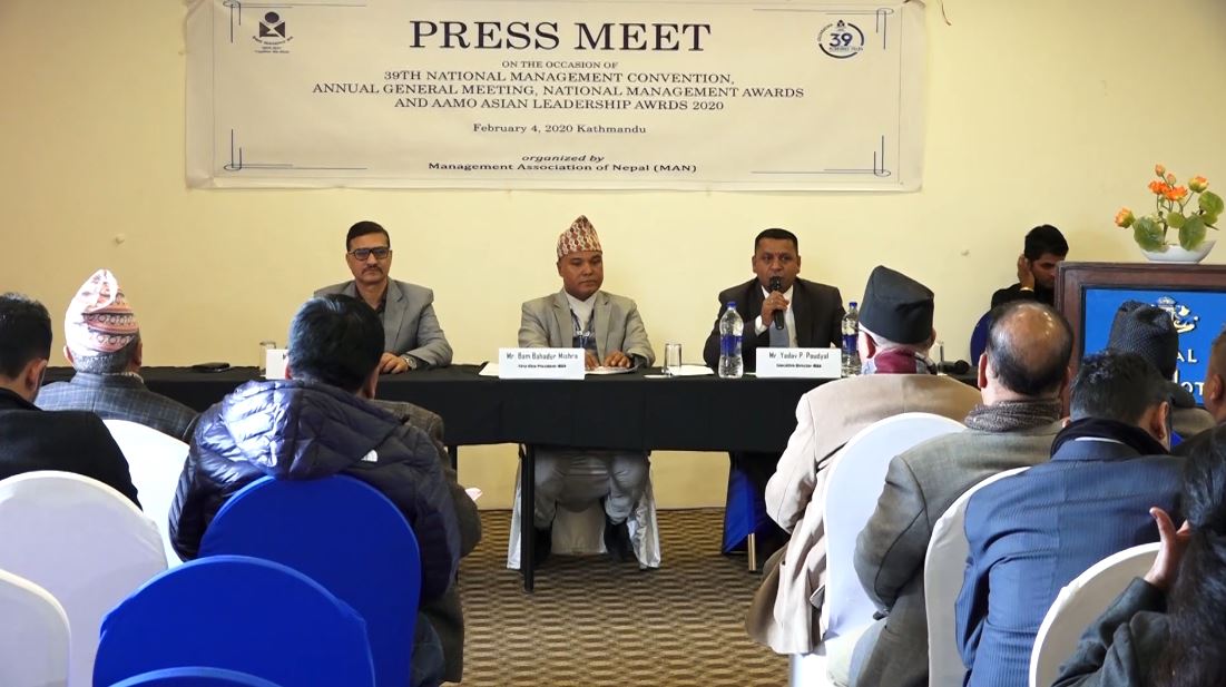 नेपाल व्यवस्थापन संघको 39 औं राष्ट्रिय व्यवस्थापन सम्मेलन शुक्रबारबाट गते हुने भएको छ। शुक्रबार नै वार्षिक साधारणसभा, राष्ट्रिय व्यवस्थापन पुरस्कार तथा सम्मान र एसियाली नेतृत्व पुरस्कार साँझ 2020 पनि आयोजना गरिएको छ। तथ्याङ्क परिचालित निर्णय प्रक्रिया नारा दिएर व्यवस्थापन सम्मेलन हुन लागेको हो। संघले आफ्नो वार्षिक साधारणसभाको अवशरमा हरेक वर्ष व्यवस्थापन सम्मेलन गर्दै आएको छ। 4 वटा कार्यपत्र प्रस्तुत हुने सम्मेलनमा अर्थमन्त्री डा. युवराज खतिवडाको प्रमुख आतिथ्यता रहनेछ। सम्मेलनमा विश्व र नेपालको व्यवस्थापन विकासको परिदृष्य 2019 नामक अनुसन्धानात्मक कृतिको पनि विमोचन हुने आयोजकले जनाएको छ।