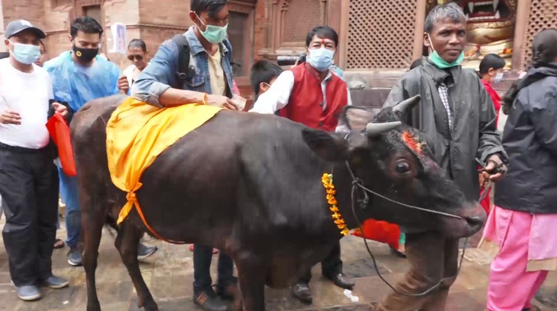 नेवारी समूदायले दिवंगत आफन्तको सम्झनामा मनाउने गाइजात्रा पर्व आज देशभर विभिन्न कार्यक्रम गरेर मनाइँदै छ । प्रत्येक वर्ष भाद्र कृष्ण प्रतिपदादेखि अष्टमीसम्म आठ दिन लगातार गाईजात्रा विभिन्न कार्यक्रम गरेर मनाउने गरिन्छ । कोरोना भाइरसका कारण यस वर्षको गाईजात्रा स्वास्थ्य मापदण्ड पालना गर्दै सामाजिक दूरी कायम गरेर मनाउन काठमाडौं जल्ला प्रशासनले अनुरोध गरेको छ । काठमाडौं उपत्यकाका तीन जिल्ला (काठमाडौं, ललितपुर र भक्तपुर) सहित नेवार समुदायको बाहुल्यता रहेका देशभरका विभिन्न स्थानमा गाईजात्रा मनाउन लागिएको हो ।आजका दिन गाई वा मानिसलाई गाईको रुपमा सिँगारेर आफ्नो क्षेत्रमा परिक्रमा गर्ने चलन छ । यसरी मानिसलाई गाईको रुपमा सिँगारेर नगर वा आफ्नो क्षेत्र परिक्रमा गर्नाले वर्षदिन भित्र दिवंगत भएकाहरुले धर्मशास्त्रमा वर्णित वैतरणी नदी सहजै पार गर्न सक्छन् भन्ने धार्मिक मान्यता रही आएको छ । राजा प्रताप मल्लले पुत्रको मृत्युको शोकमा भावविह्वल भएकी रानीलाई बुझाउनका लागि सबै जनतालाई आफ्नो घरबाट गाईजात्रा निकाल्नू भनेर आदेश दिएपछि यो पर्व शुरु भएको बताइन्छ । रानीलाई खुशी पार्न गरेको यो उपायले पनि रानी खुशी नभएपछि आजकै दिन विभिन्न हास्य व्यंग्यात्मक सिर्जनाहरुको कार्यक्रम आयोजना गरेर राजाले रानीको मन शान्त पारेको इतिहास छ । यसैबीच, सरकारले गाईजात्राको अवसरमा देशभर सार्वजनिक विदा समेत दिएको छ ।
