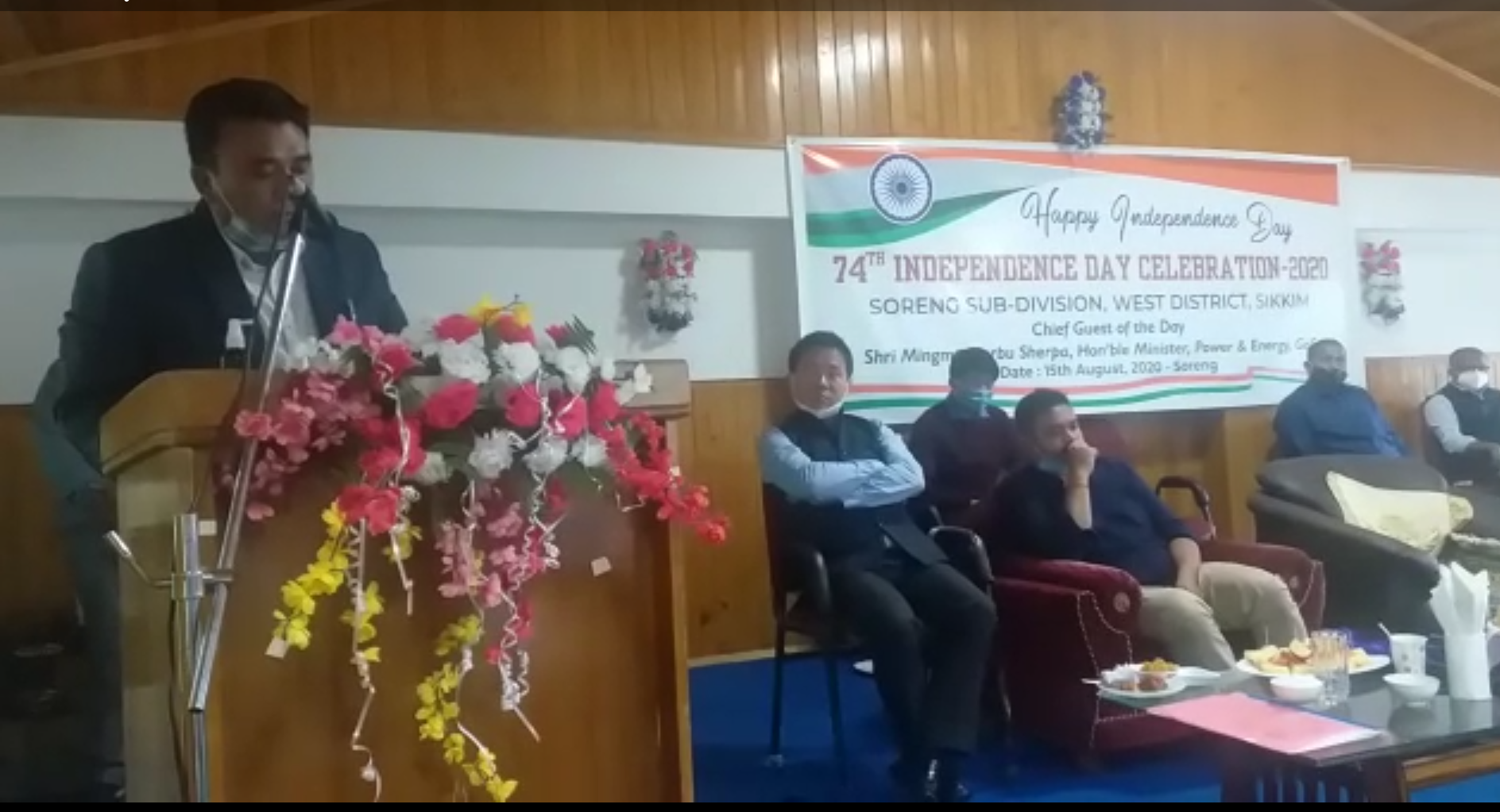सम्बोधन गर्ने क्रममा मुख्य अथिति मन्त्री एमएन शेर्पाले प्रथमत: ७४ औं स्वतन्त्रता दिवसको अवसरमा महकुमावासीलाई बधाई दिँदै देशलाई स्वतन्त्रता दिलाउन शहीद बनेका स्वतन्त्रता सेनानीहरुलाई स्मरण गर्दै उनले श्रद्धाञ्जली अर्पण गरे। मुख्यमन्त्रीको नेतृत्वमा सरकारले सिक्किमे जनताको हितमा उच्च प्राथमिकता दिएर काम गरिरहेको मन्तव्य जाहेर गर्दै सरकारले १५ महिना भित्रमा अनेकौं काम गरेको बताए। मन्त्री शेर्पाले अघि भने, सिक्किम शान्तिमय राज्य हो। जनता सुरक्षित छन्। जातीय सद्भावना एसकेएम सरकारको मूलमन्त्र रहेको बताउँदै मन्त्री शेर्पाले सबैजना सिक्किमे भएर बाँच्नु पर्ने आह्वान गरे। कार्यक्रमलाई विशिष्ट अथिति मुख्यमन्त्रीका प्रेस सल्लाहकार सीपी शर्माले पनि सम्बोधन गरे।