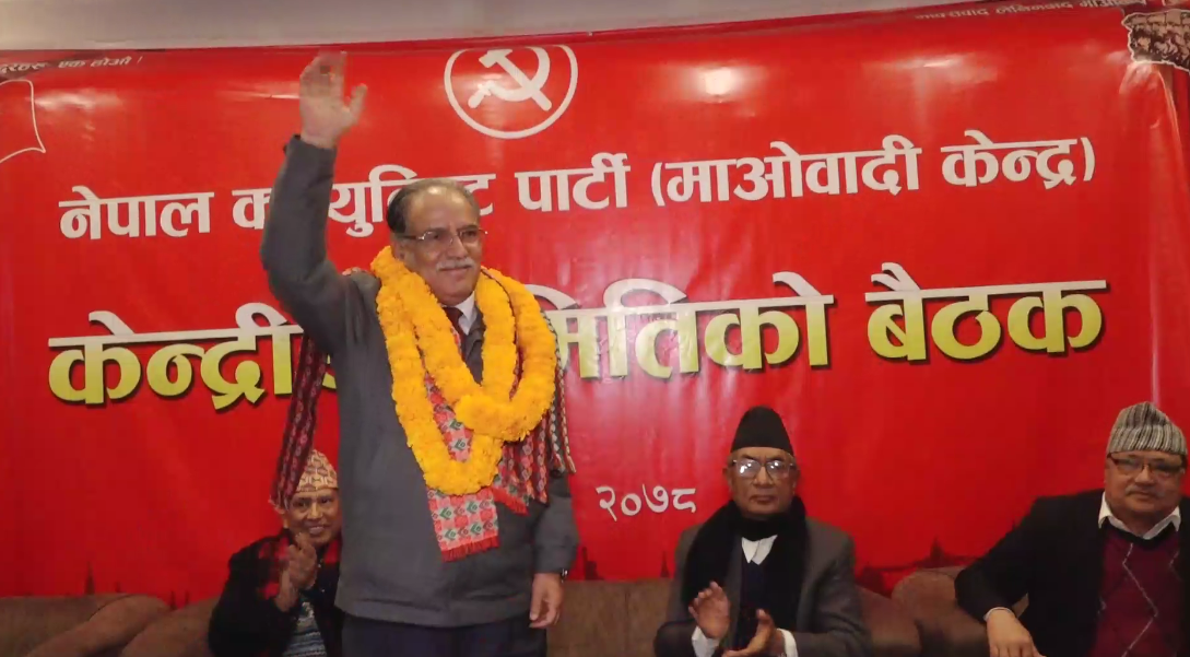 नेकपा माओवादी केन्द्रको अध्यक्षमा पुष्पकमल दाहाल प्रचण्ड निर्विरोध निर्वाचित हुनुभएको छ । सोमबार ललितपुरमा बसेको आठौं महाधिवेशनबाट चुनिएको २३६ सदस्यीय केन्द्रीय कमिटीको पहिलो बैठकले प्रचण्डलाई अध्यक्षमा चयन गरेको हो । बैठकमा केन्द्रीय सदस्य नारायणकाजी श्रेष्ठले प्रचण्डलाई अध्यक्षमा प्रस्ताव गर्नुभएको थियो भने केन्द्रीय सदस्य कृष्णबहादुर महराले समर्थन गर्नुभएको थियो । अध्यक्षमा निर्वाचित भएपछि प्रचण्ड आफूले महत्वपूर्ण अवस्थामा पार्टीको नेतृत्व गर्ने अवसर पाएको बताउनुभयो । उहाले महाधिवेशनमा अपनाएको शैली र विधि पुरै जनवादी र लोकतान्त्रिक भएको दावी गर्नुभयो । उहाले केहि सञ्चारमाध्यमले महाधिवेशनको प्रक्रियामाथि अपमान गर्न खोजेको गुनासो गर्दै पार्टीको महाधिवेशनले क्रमभंग गरेको दावी गर्नुभयो । आफु अव पार्टी अध्यक्षबाट अलग हुनुपर्ने भन्ने लागेपनि मुलुकको आवश्यकताका लागि आफु पुन अध्यक्षमा बसेको उहाले बताउनुभयो । निर्वाचित केन्द्रीय समितिको पहिलो बैठकले पदाधिकारी भने चयन गरेन । अध्यक्ष प्रचण्डले उपचारपछि बर्षमान पुन र ओनसरी घर्ति नेपाल आउने भएकाले उहाहरुलाई पनि समेटेर पदाधिकारी चयनका लागि २५ गतेका लागि बैठक सारिएको जानकारी दिनुभयो । त्यस्तै माओवादी नेता कृष्ण बहादुर महराले तयारी नपुगेका कारण गृहकार्य गर्न केहिदिन केन्द्रीय कमिटीको बैठक सारिएको जानकारी दिनुभयो ।समितिको पुस २५ गते अर्को बैठक बस्ने र त्यसअघि छलफल गरेर पदाधिकारी, स्थायी समिति, पोलिट्ब्यूरो समितिका सदस्यहरु पनि टुंगो लगाउने माओवादीले जनाएको छ । सोमबार नवनिर्वाचित केन्द्रीयहरुले पद तथा गोपनियताको सपथ पनि लिएका थिए ।