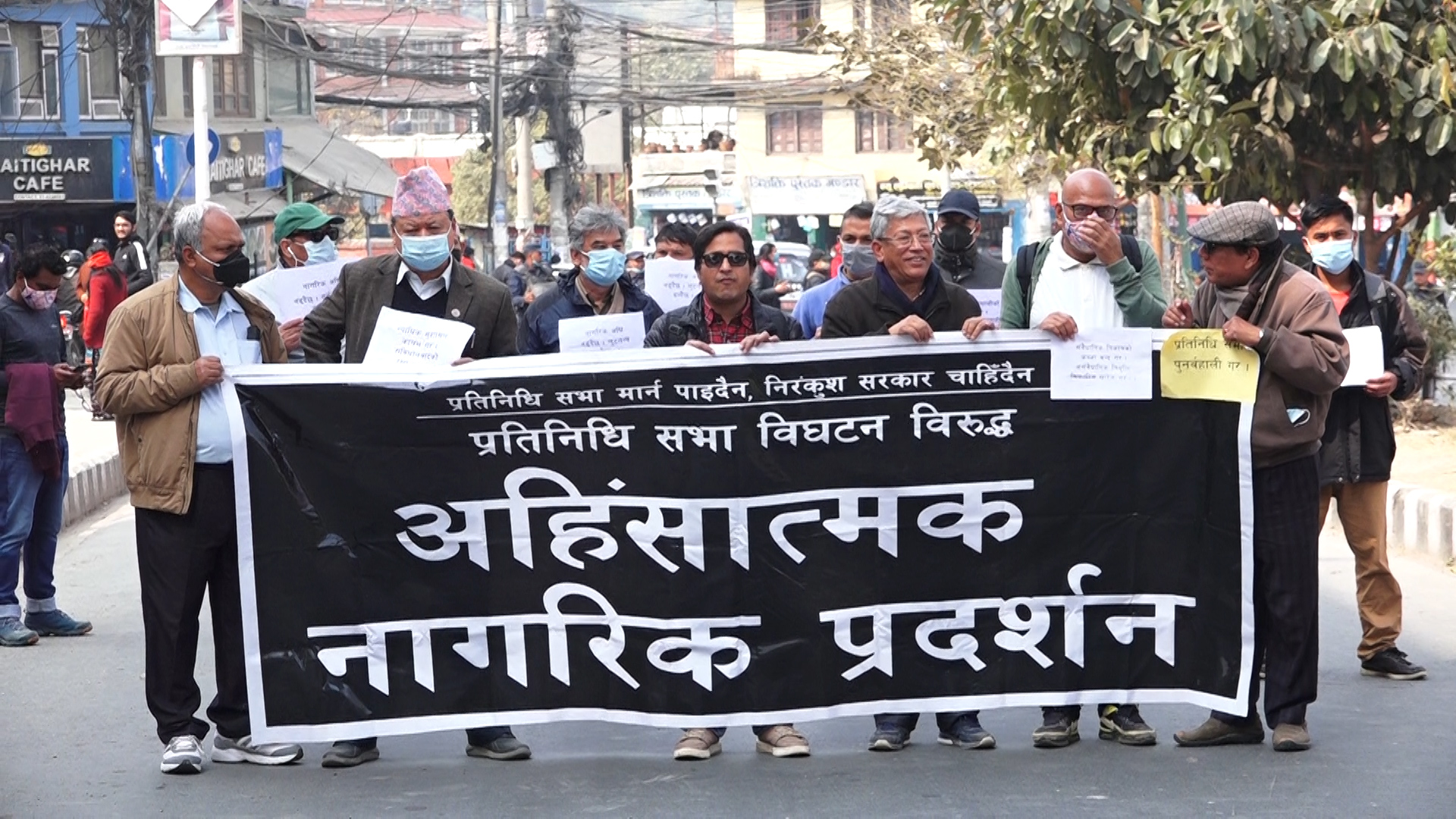 अहिंसात्मक नागरिक प्रर्दशनको नाममा शनिबार पनि काठमाण्डौको माईतिघर मण्डलामा सरकारको प्रतिगनमकारी कदम विरुद्ध नागरिक समाजका प्रतिनिधिले प्रर्दशन गरेका छन् । प्रतिनिधिसभा मार्न पाईदैन, निरंकुश सरकार चाहिदैन भन्दै नागरिक समाजका प्रतिनिधिले माईतिघर मण्डलामा प्रर्दशन गरेका हुन् । संबैधानिक निकायको कब्जा बन्द गर, संबैधानिक प्रणालीको सुरक्षा गर–राजद्रोहीलाई कारवाही गर, लगायत नारा लेखिएका पर्चा सहित उपस्थित नागरिक समाजका प्रतिनिधिले प्रतिनिधिसभा विघटन गर्ने प्रधानमन्त्रीको कदमको विरोध गरेका थिए । प्रर्दशनमा केदारनरसिंह केसी, डाक्टर गोविन्द केसी, नारायण वाग्ले लगायतको उपस्थिति थियो ।