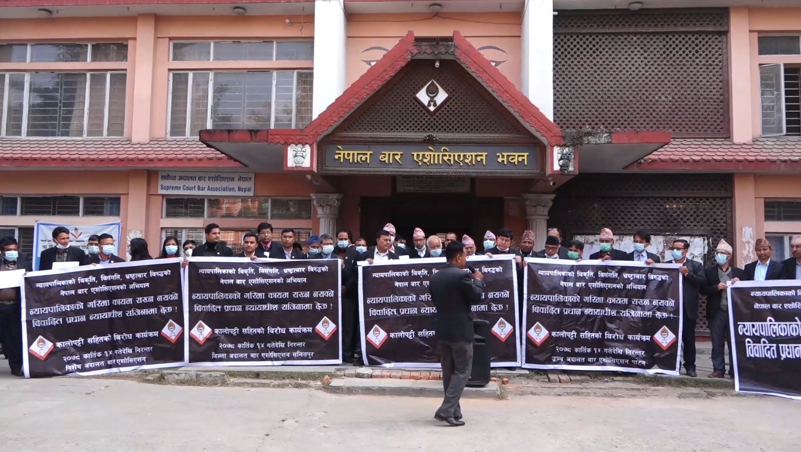 नेपाल बारको अगुवाईमा प्रधानन्यायाधीशविरुद्ध मंगलबार पनि सर्वोच्च अदालतमा विरोध प्रदर्शन भएको छ । प्रधानन्यायाधीश चोलेन्द्र शमशेर जबराको राजीनामा माग गर्दै बारले निरन्तर सवोच्च परिसरमा विरोध प्रदर्शन गर्दै आएको छ । यस्तै बारले बिहीबार मंसिर ९ गते दिउँसो २ बजे सर्वोच्च अदालतदेखि बालुवाटारसम्म मार्चपास गर्ने जनाएको छ । बारका अध्यक्ष चण्डेश्वर श्रेष्ठले जनताका लागि न्याय चाहिएकाले जनता उठ्नुपर्ने बेला आएको भन्दै मार्चपास गर्न लागिएको जानकारी दिनुभयो । उक्त मार्चपासमा सबै पेसागत संगठनका साथै सर्वसाधारणको पनि सहभागिता रहने उहाले बताउनुभयो । श्रेष्ठले बालुवाटारमा नै धेरै कुरा तय हुने भएको र प्रधानन्यायाधीश लुकेर सर्वोच्च आइरहेकाले त्यसलाई रोक्न मार्चपास गरिएको जिकिर गर्नुभयो । श्रेष्ठले प्रधानन्यायधिशको राजीनामा नआए शुक्रबार बारले अर्को चरणको आन्दोलनको घोषणा गर्ने स्पष्ट पार्नुभयो । त्यस्तै बारमा आयोजित विरोध सभामा अधिवक्ता तथा मानव अधिकार आयोगकी पूर्व सदस्य मोहना अन्सारीले प्रधानन्यायाधीशलाई अव प्रधानन्यायधिशलाई पदमा बस्ने कुनै अधिकार नभएको बताउनुभयो । प्रधानन्यायधिशलाई भ्रष्टाचारको आरोप लाग्दा पनि सांसदहरु चूप लागेर बस्नु बिडम्वना भएको उहाले बताउनुभयो । यसअघि बारले प्रधानन्यायाधीशलाई महाभियोग लगाउनका लागि दलहरुलाई धारणापत्र बुझाएको थियो ।