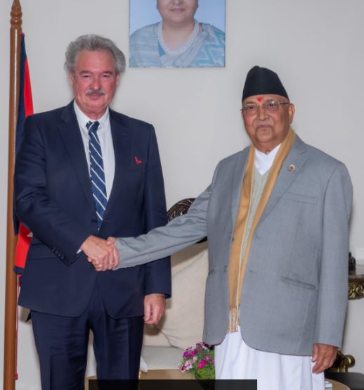प्रधानमन्त्री निवास बालुवाटारमा आज भएको भेटवार्तामा दुई देशबीचको सम्बन्धलाई अझ उचाइमा पुर्याउनुपर्ने, व्यापार, लगानी र प्रविधि हस्तान्तरणलाई द्विपक्षीय हितमा उपयोग गर्नुपर्ने, युरोपेली सङ्घमार्फत नेपाललाई प्राप्त हुँदै आएको सहयोगलगायत विषयमा छलफल भएको भेटमा सहभागी मन्त्रालयका सहसचिव निर्मलराज काफ्लेले जानकारी दिनुभयो ।
