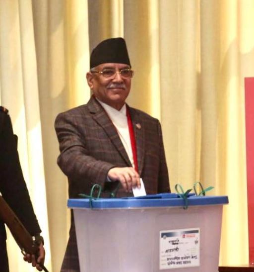 नेकपा माओवादी केन्द्रका अध्यक्ष एवम् प्रधानमन्त्री पुष्पकमल दाहाल प्रचण्डले राष्ट्रपतिका उम्मेदवारलाई मतदान गरेका छन्। बिहीबार नयाँ बानेश्वरस्थित संसद् भवनको ल्होत्से कक्षमा रहेको मतदान केन्द्रमा उनले केही बेरअघि मतदान गरेका हुन्। नयाँ बानेश्वरस्थित संसद् भवनको ल्होत्से कक्षमा कायम गरिएका संघीय सांसद र प्रदेशसभा सदस्यका लागि बेग्लाबेग्लै मतदान केन्द्रमा अहिले मतदान भइरहेको छ। तेस्रो राष्ट्रपतिका लागि कांग्रेसका रामचन्द्र पौडेल र एमालेका सुवास नेम्बाङ प्रतिस्पर्धामा छन्।