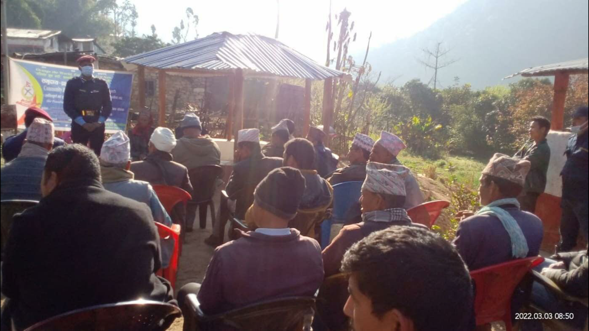 प्रहरी र स्थानीय जनता बीच शान्ति सुरक्षाका विषयलाई लिएर दैलेखमा अन्तरक्रिया कार्यक्रम सम्पन्न भएको छ। नेशनल लाईभ टिभीका सहयोगी राज रोकायाले दिएको जानकारी अनुसार चामुण्डा बिन्द्रा सैनी नगरपालिका वडा नं.7 स्थित प्रहरी चौकी पाल्तडा दैलेखको प्राङ्गणमा जिल्ला दैलेख चामुण्डा बिन्द्रा सैनी नगरपालिका जेष्ठ नागरीक पदमराज जैसीको अध्यक्षतामा भएको अन्तरक्रियामा चामुण्डा बिन्द्रा सैनी नगरपालिका नगर प्रमुख सुर्य बहादुर शाही प्रमुख आतिथिमा, स्थानिय समुदायका शिक्षक, राजनितिक दलका प्रतिनिधि, लगायत अन्य सरोकारवाला ब्यक्तिहरु अन्दाजि 50 जनाको उपस्थिति रहेको थियो। समुदाय प्रहरी-साझेदारी कार्यक्रम अन्तर्गत अपराध रोकथाम नियन्त्रण तथा शान्ति सुरक्षा कायम गर्न समुदायको भुमिका सम्बन्धमा यस कार्यालयका, कार्यालय प्रमुख प्रहरी नायब उपरिक्षक भुवनेश्वर प्रसाद साह द्वारा प्रस्तुतिकरण गरी अन्तरक्रियामा सहभागीहरुको जिज्ञासाहरुलाई प्रष्ट पार्दै कार्यक्रम सम्पन्न भएको थियो ।