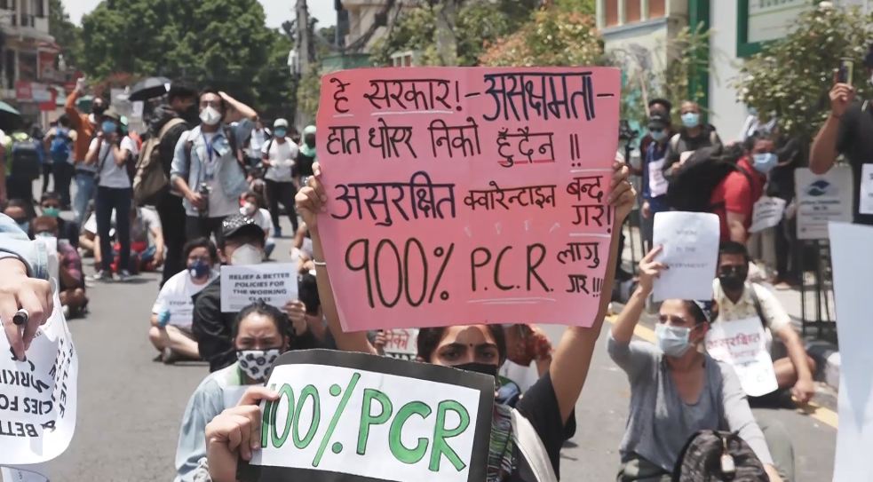 कोरोना भाइरसको महामारी रोकथाममा सरकारले प्रभावकारी काम नगरेको भन्दै विरोध प्रदर्शन गर्नेहरुमाथि प्रहरीले पानीको फोहरा हानेको छ । मंगलबार विहान प्रधानमन्त्री निवास बालुवाटार अगाडि प्रदर्शन गर्न पुगेका सामाजिक अभियान्ता र व्यवसायीहरुलाई प्रहरीले पानीको फोहराले हानेको हो । उनीहरुले कोभिड १९ नियन्त्रणका लागि आरडिटी परीक्षणलाई रोकेर पीसीआर परीक्षण गर्न माग गरेका छन् ।