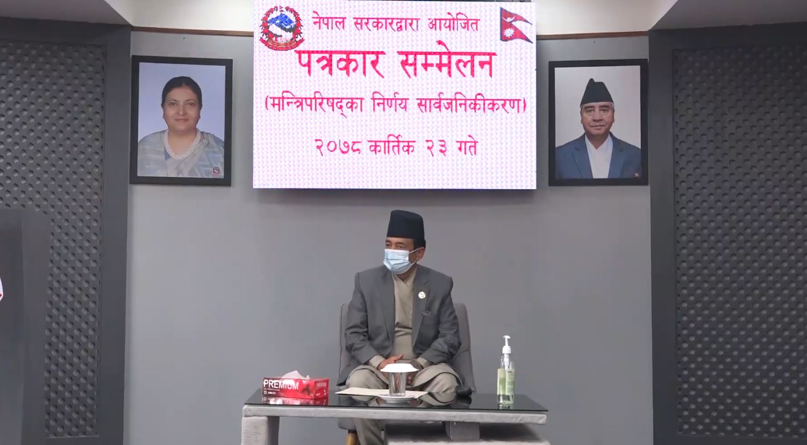 सरकारले बेमौसमी बर्षाका र बाढी,  ढुवानका कारण धान बालीमा भएको क्षतिको अध्ययन गर्न गठित कार्यदलले पेश गरेको कार्यबिधिलाई स्वीकृत गरेको छ । मन्त्रिपरिषद्का निर्णय सार्वजनिक गर्न मंगलबार सिंहदरबारमा आयोजित पत्रकार सम्मेलनमा सरकारका प्रवक्ता ज्ञानेन्द्र बहादुर कार्कीले धान बालीमा भएको क्षतिको अध्ययन गरि राहत उपलव्ध गराउने सम्बन्धमा गठित कार्यदलको कार्यबिधि स्वीकृत गर्ने निर्णय गरेको जानकारी दिनुभयो । बैठकले  रुपन्देहीको मोतिपुर औधोगिक करिडोर घटनामा ज्यान गुमाएका मृतक परिवारलाई राहत दिने निर्णय पनि गरेको छ । त्यस्तै कुश्मामा ४०० केभि सवस्टेशन र जुम्ला सवस्टेशनका लागि जग्गा प्राप्तीका लागि स्वीकृत दिने निर्णय पनि गरेको छ भने किर्तिपुर नगरपालीका र चीनको एक शहरबीच भगिनी सम्बन्ध कायम गर्नका लागि अनुमति दिने निर्णय पनि बैठकले गरेको प्रवक्त कार्कीले जानकारी दिनुभयो । त्यस्तै बैठकले लोक सेवा आयोगको सिफारिस बमोजिम बिभिन्न सेवाका राजपत्राङ्कित प्रथम श्रेणिमा नियुक्त गर्न स्वीकृत दिने र जेनेभामा हुने स्वास्थ्य सम्बन्धी सम्मेलनमा भाग लिन स्वीकृती प्रदान गर्ने निर्णय भएको उहाले बताउनुभयो । उहाले सवै नागरिकलाई कोरोनाबिरुद्धको खोप दिन सरकार प्रतिवद्ध रहेको र बालबालिकाका लागि पनि छिटै खोप उपलव्ध गराउने जानकारी दिनुभयो । त्यस्तै मन्त्रिपरिषद्ले प्रदेश १ मा पर्शुराम खापुङ, कर्णालीमा तिलक परियार र सुदूरपश्चिममा देवराज जोशीलाई प्रदेश प्रमुख नियुक्त गर्न सिफारिस गरेको बताइएको छ ।