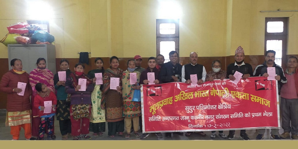 मुल प्रवाह अखिल भारत नेपाली एकता समाजको जम्मु कश्मीरमा संगठन विस्तार भएको छ । नेशनल लाइभ टी.भीलाई चंडिगढबाट खिमराज चालिसेले दिएको जानकारी अनुसार आठौं अखिल भारत सम्मेलन (27–28 फरवरी र 1 मार्च 2022) मा हुन गैरहेको सम्मेलनलाई सफल पार्नको लागि प्रचारात्मक कार्यक्रमसहित संगठन विस्तारलाई एकता समाजले तिब्रता दिएको हो । मूल प्रवाह सुदूरपश्चिमोत्तर क्षेत्रीय समिति अन्तर्गत जम्मू कश्मीर नगरका सल्लाहकार लिलामणी पोख्रेलको पहलमा आयोजित भेलाको उद्घाटन केन्द्रीय सदस्य कुलबहादुर बगालेले गर्नु भएको थियो ।सो क्रममा बगालेले देशको वर्तमान परिस्थिति एवं मूल प्रवाहको लक्ष्य र उद्देश्यका साथै आठौं अखिल भारत सम्मेलनको विषयमा प्रकाश पार्नुभएको थियो । त्यस्तै, सुदूरपश्चिमोत्तर क्षेत्रीय सदस्य प्रेम आचार्य र मुकुन्दप्रसाद गौतमले भेला सफलताको शुभकामना दिनुभएको थियो। भेलाले 13 पूर्ण, दुई वैकल्पिक गरि 15 सदस्यीय नगर समिति गठन गरेको छ । समितिको अध्यक्षमा रामबहादुर गुरुङ, उपाध्यक्ष होमनाथ गौतम, सचिव मेगबहादुर गुरुङ, सहसचिव माया गुरुङ र कोषाध्यक्षमा लीलामणि पोख्रेल चयन हुनुभएको छ । सदस्यहरुमा डा.राज कुमार, हिमांसु गुरुङ, शशिराम घर्तीमगर, किशन गुरुङ, किरण गुरुङ, शक्ति बुढामगर, निरा देवी र रोहित भण्डारी तथा वैकल्पिक सदस्यमा गंगाबहादुर थापा हुनुहुन्छ भने हाललाई एक स्थान रिक्त राखिएको छ । कार्यक्रम मेगबहादुर गुरुङको सञ्चालन तथा राजकुमारको अध्यक्षतामा सम्पन्न भएको थियो भने स्वागत लीलामणि पोख्रेलले गर्नु भएको थियो।