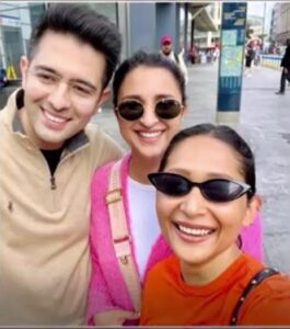 परिणीतिले सेतो ड्रेसको साथ हरियो ब्लेजर लगाएकी थिइन् र सनग्लास लगाएकी थिइन् । जहाँ राघव चड्डा निलो स्वेटर र कालो ट्राउजरमा देखिएका थिए । यसअघि दुवै आईपीएल खेलमा सँगै देखिएका थिए । यसका साथै राघव-परिणिती लण्डनको सडकमा घुमिरहेको तस्बिर पनि सार्वजनिक भएको छ । यो तस्बिरमा जोडी क्याजुअल आउटफिटमा र फ्यानसँग फोटो क्लिक गर्दा मुस्कुराउँदै देखिएका छन् । राघव-परिणितीले मई १३ मा दिल्लीको कपुरथला हाउसमा इन्गेजमेन्ट गरेका थिए ।