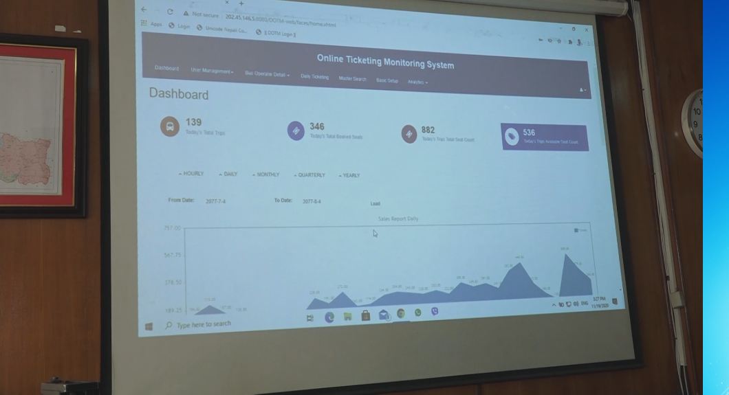 मध्यम तथा लामो दुरीमा सञ्चालन हुने सार्वजनिक यातायात सेवाको नियमन गर्न सरकारले अनलाईन टिकेटिङ मोनिटरिङ सिस्टम (ओटिएमएस) लागु गरेको छ । यातायात सुविधामा नागरिकहरुको सरल, सहज र समान पहुँच सुनिश्चित गर्दै यातायात क्षेत्रमा लगानी अभिवृद्धि गर्ने र यातायत क्षेत्र सुरक्षित, व्यवस्थित र अपाङ्गता भएका व्यक्ति अनुकुल बनाउने नीति अनुसार यातायात सेवाको नियमनका लागि ओटिएमएस लागु गरिएको हो । सरकारले कोरोनाको जोखिम न्यूनिकरण र सम्भावित महामारीलाई मध्यनजर गर्दै यसअघि नै मध्यम तथा लामो दुरीका सार्वजनिक यातायातको टिकट काउन्टरमा हुने भिड व्यवस्थापन गर्न र सार्वजनिक यातायातको टिकट खरिदलाई पारदर्शी बनाउन अनलाइन टिकट खरिद विक्रि निर्देशिका लागु गरिसकेको छ। अनलाईन टिकेटिङ सिस्टमको उद्घाटन गर्दै भौतिक पूर्वाधार तथा यातायात व्यवस्थामन्त्री बसन्तकुमार नेम्वाङले सार्वजनिक यातायातलाई सर्वसुलभ, पारदर्शी सुरक्षित बनाउन नीतिगत व्यवस्था गर्ने सन्दर्भमा मन्त्रालय कानून निर्माणमा लागिरहेको बताउनुभयो । उहाँले एकीकृत प्रकृया र पारदर्शी प्रविधिमैत्री बनाएर काम गर्न सार्वजनिक यातायात प्राधिकरणको कल्पना गरिएको समेत बताउनुभयो ।