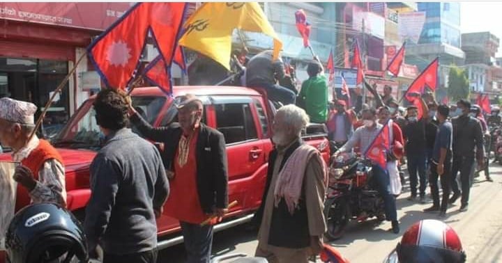 महेन्द्रनगरमा पनि संवैधानिक राजतन्त्रका पक्षमा प्रदर्शन भएको छ। मंगलबार दिउँसो राष्ट्रवादी युवाहरुको समुहले राजतन्त्र र हिन्दु धर्म कायम हुनुपर्ने माग गर्दै प्रदर्शन गरेका हुन्। उनीहरुले गणतन्त्र र धर्म निरपेक्षता खारेज गरेर संवैधानिक राजतन्त्र र हिन्दु धर्म कायम हुनुपर्ने माग गरेका छन्। ‘गणतन्त्र र धर्म निरपेक्षताका नाममा भ्रष्टाचार र पार्टीगत विभाजनले देश डुबिसक्यो,’ प्रदर्शनमा सहभागी राष्ट्रिय प्रजातन्त्र पार्टी कञ्चनपुरका अध्यक्ष पुर्ण बहादुर चन्दले भने, ‘यसकै विरोधमा हामीले प्रदर्शन गरेका हौं।’ भीमदत्त नगरपालिकाको शिवमन्दिरबाट सुरु भएको र्याली महेन्द्रनगर बजार परिक्रमा गरेर मदनचोकको भेटघाट चौतारीमा समापन गरिएको थियो।