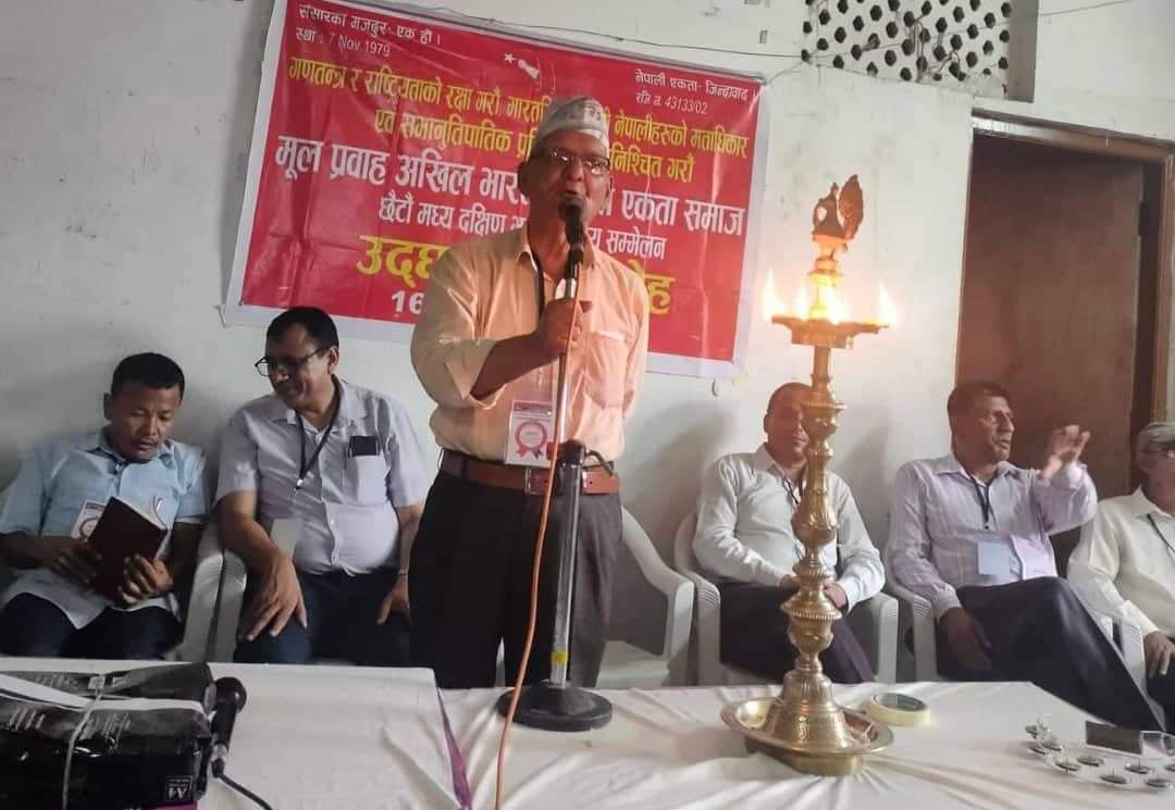 मूल प्रवाह अखिल भारत नेपाली एकता समाज, मध्यदक्षिण क्षेत्रीय समितिको छैटौँ क्षेत्रीय सम्मेलन हैदरावादमा सम्पन्न भएको छ । 16 जुलाई शनिबारदेखि उद्घाटन र बन्दशत्र सम्पन्न भई जुलाई 17 आइतबार सम्मेलनको घोषणासभा सम्पन्न भएको हो । नेशनल लाईभ टिभीलाई प्राप्त जानकारी अनुसार घोषणासभालाई प्रमुख अतिथि राष्ट्रिय जनमोर्चाका अध्यक्ष चित्रबहादुर केसीले सम्बोधन गरेका थिए ।