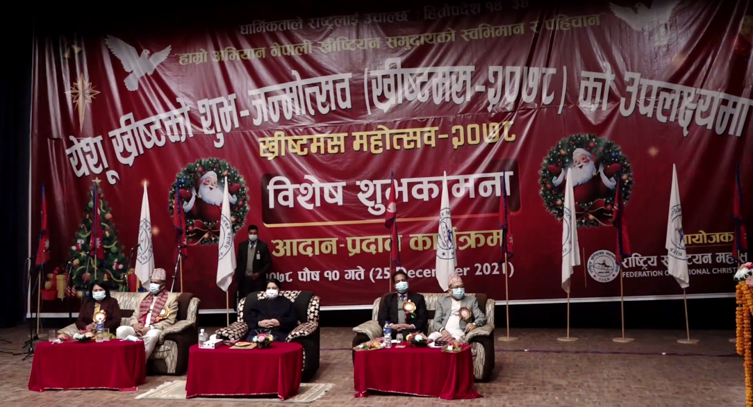 राष्ट्रपति विद्यादेवी भण्डारीले सभ्य र सुसंस्कृत समाज तथा समुन्नत नेपाल निर्माणतर्फ अग्रसर हुनुपर्ने बताउनुभएको छ । ‘क्रिसमस डे’का अवसरमा राष्ट्रिय ख्रिष्ट्रियन महासंघले शनिबार काठमाडौंमा आयोजना गरेको कार्यक्रममा उहाले समुदायबीच आपसी सद्भाव, सहिष्णुता र एकताको भावना अभिवृद्धि गर्दै सभ्य र सुसंस्कृत समाज तथा समुन्नत नेपाल निर्माणतर्फ अग्रसर हुनुपर्ने बताउनुभएको हो । उहाले विविध सांस्कृतिक पहिचान एवम् धार्मिक संस्कृतिले राष्ट्रिय एकतालाई थप सुदृढ बनाउन सहयोग पुग्ने विश्वास व्यक्त गर्नुभयो । सुखी नेपाली समृद्ध नेपालको नारालाई साकार पार्नका लागि सवैबिचको एकता अपरिहार्य रहेको उहाको भनाई छ । कार्यक्रममा युवा तथा खेलकुद मन्त्री महेश्वरजंग गहतराजले बिभिन्न आन्दोलनबाट प्राप्त उपलव्धीलाई रक्षा गर्दै मुलुकमा सामाजिक न्यायलाई सुदृढ गर्नुपर्ने धारणा राख्नुभयो ।