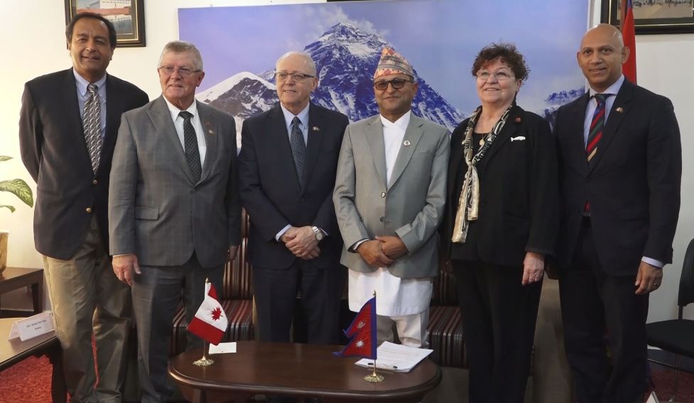 राष्ट्रियसभाका अध्यक्ष गणेश प्रसाद तिमिल्सिना र नेपाल भ्रमणमा रहनुभएका क्यानडाको उपल्लो सदन (सिनेट) का सभामुख जर्ज जे फ्युरी नेतृत्वको संसदीय प्रतिनिधिमण्डल बीच शिष्टाचार भेट भएको छ। राष्ट्रियसभा अध्यक्ष तिमिल्सिनाको निमन्त्रणामा दुई दिने नेपाल भ्रमणमा रहेको सभामुख फ्युरी नेतृत्वको प्रतिनिधमण्डले सोमबार सिंहरबारस्थित राष्ट्रियसभाका अध्यक्ष तिमिल्सिनाको सचिवालयमा उहाँसँग भेटवार्ता गरेको हो। भेटका क्रममा नेपाल र क्यानडाबीचको संसदीय सहकार्य लगायत विषयमा कुराकानी भएको छ। राष्ट्रियसभाका सचिव राजेन्द्र फूयाँलले संसदीय सम्बन्धमा यो अहिले सम्मकै उच्चस्तरीय भ्रमण भएको तथा भेटवार्ताले संसदीय अभ्यास र सिकाईको आदान प्रदान र सहयोगमा ठूलो महत्व राख्ने बताउनुभयो। सचिव फूयाँलका अनुसार , भेटमा अध्यक्ष तिमिल्सिनाले उच्चस्तरीय भ्रमणले दुई देशको सम्बन्ध र सहकार्यलाई मजबुद बनाउन सहयोग पुर्याउने विश्वास व्यक्त गर्नुभएको थियो। दुवैदेशका संसदमा संसदीय मैत्री समूह गठन भएकोमा खुसी व्यक्त गर्दै संसद मैत्रीसमूहले दुई देशका संसदबीचको सम्बन्धलाई प्रबद्र्धन गर्न महत्वपूर्ण भूमिका खेल्ने विश्वास पनि उहाँले व्यक्त गर्नुभएको थियो।