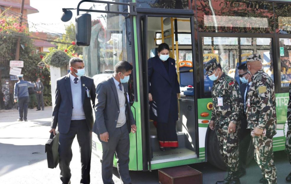 राष्ट्रपति विद्यादेवी भण्डारीले साझा यातायातको बिजुली बसमा यात्रा गरी कार्यक्रममा सहभागी भएकी छिन्।