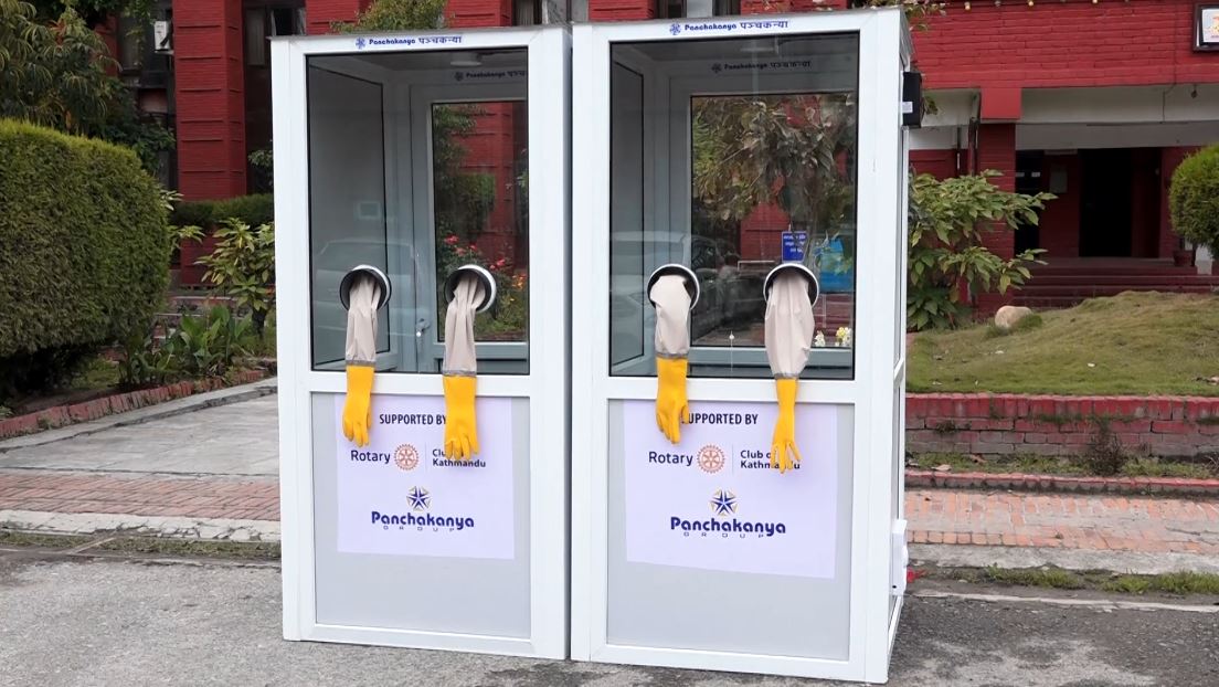 रोटरी क्लब थापाथलीले स्वास्थ्य तथा जनसंख्या मन्त्रालयलाई स्वाव कलेक्सन बुथ हस्तान्तरण गरेको छ। बुधबार क्लबले मन्त्रालयमै पुगेर मन्त्री भानुभक्त ढकाललाई स्वाव कलेक्सन बुथ हस्तान्तरण गरेको हो। पीपीइ लगाएर स्वाव कलेक्सन गरे जस्तै बुधबाट पनि परीक्षणका लागि स्वाव कलेक्सन हुन्छ। मन्त्रालयका सह प्रवक्ता समिर कुमार अधिकारले बक्सभित्र पसेर स्वास्थ्यकर्मीहरुले घाँटीको ऱ्यालको नमुना लिने बताउनुभयो। कलेक्सन बुथको माध्यमबाट स्वावको नमुना लिनलाई सहज हुनेछ।