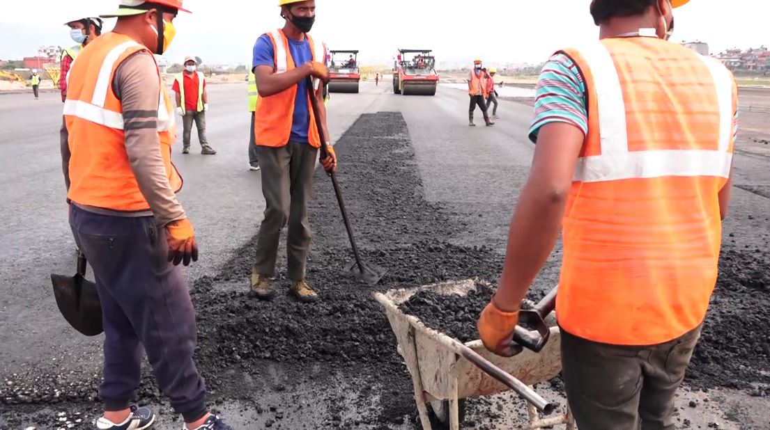 लकडाउनका कारण देशका अधिकांश आयोजनाका निर्माण कार्य ठप्प भएपनि त्रिभुवन अन्तर्राष्ट्रिय विमानस्थलको धावनमार्ग निर्माणको काम भने रोकिएको छैन। कोरोना संक्रमणको जोखिम बढेपछि सरकारले जारी गरेको लकडाउनमा सामाजिक दुरी कायम गर्दै निर्माणको काम भइरहेको हो। 3 हजार 50 मिटर रहेको विमानस्थलको धावनमार्गमा 3 सय मिटर बढाउने गरी काम भइरहेको छ। धावनमार्ग निर्माण कार्यको अनुगमन गर्दै संस्कृति पर्यटन तथा नागरिक उड्डयन मन्त्री योगेश भट्टराईले विमानस्थलको क्षमता बढाउन एवं अवतरण र उडानमा थप सुरक्षा प्रत्याभूत गर्ने विषयमा ध्यान दिइएको बताउनुभयो।