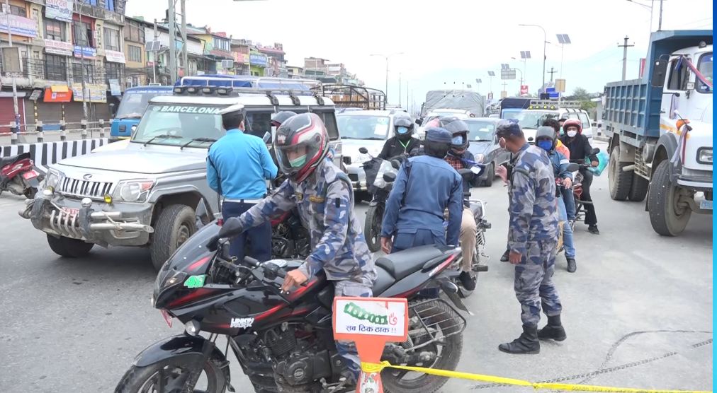 कोरोना भाइरस (काभिड-19) संक्रमणको जोखिम न्यूनिकरण एवम् रोकथामका लागि जारी भएको लकडाउनको आज 43 औँ दिन पुगेको छ। गत चैत 11 गतेदेखि सुरु भएको लकडाउनको 43 दिनसम्म आइपुग्दा जनजीवन प्रभावित भएको छ तर प्रहरीले लकडाउनलाई पूर्ण पालना गराउन चेकजाँचलाई कडाई गरेको छ। मंगलबार काठमाडौँ उपत्यकाका केही भागमा पुग्दा लकडाउनको पूर्ण पालना भएको देखिएन। एयरपोर्ट, कोटेस्वर, तिनकुने, बानेस्वर, माइतिघरलगायतका ठाउँमा प्रहरीले सवारी साधनको चेकजाँचलाई कडाई गरेको देखियो। तर सडकमा अत्यावश्यक सवारी साधन, कर्मचारीका सवारी साधन, ढुवानीका सवारी साधनको चाप बढेको देखिन्छ। अत्यावश्यक र पासबाहक सवारी सवारी साधनको भिड बढ्दै गएको छ। प्रहरीले चेकजाँचलाई कडाई गरेसँगै सवारी साधनहरुको लामो लाइन देख्न सकिन्छ। अनावश्यक रुपमा सञ्चालन गरिएका सवारी साधनलाई प्रहरीले नियन्त्रणमा लिएको छ। यस्तै उपत्यकाका भित्रि सडकहरुमा पनि केही पसलहरु खुलेका छन भने मानिसहरु आफ्नो घर नजिकको पसल सम्म पुगेर दैनिक उपभोग्य सामग्रीहरु किनमेल गरेको देखिन्छ।