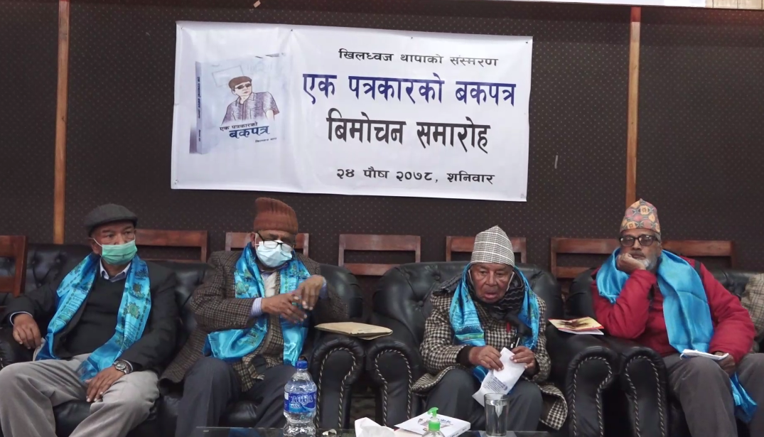 वरिष्ठ पत्रकार खिलध्वज थापाको कृति ‘एक पत्रकारको बकपत्र’ सार्वजनिकीकरण गरिएको छ । शनिबार काठमाडौंमा उक्त पुस्तकको वरिष्ठ पत्रकार भैरव रिसालले विमोचन गर्नुभएको हो ।  पत्रकारिताको यात्रामा भोगेका घटना, गरिएको अनुभवलगायत विषयवस्तु समेटिएका उक्त पुस्तक सरल भाषामा प्रस्तुत गरिएको छ । पुस्तकमा पेरिसमा एकान्तबास, काश्मीरदेखि कन्याकुमारीसम्म, कारवाँ नियाल्दै लाङ्टाङ हिमालमा एक रात, घुमघाम राजारानीसँग, एक पत्रकारको आँखामा राजनीति, पुरानो ऐनामा आफूलाई नियाल्दालगायतका शीर्षकमा विविध विषयवस्तु समेटिएका छन् । कार्यक्रममा पुस्तकका सर्जक थापाले आफ्नो जीवनकाल र पत्रकारिता यात्रामा भोगेका विषयवस्तुलाई पुस्तकमा समावेश गरिएको जानकारी दिनुभयो ।  कार्यक्रममा वरिष्ठ पत्रकार रिसालले नेपाली वाङ्मयमा ‘एक पत्रकारको बकपत्र’  एउटा खदिलो सम्पत्तिका रुपमा थपिएको बताउनुभयो ।