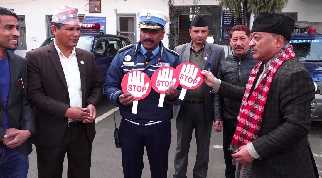 ट्राफिक प्रहरीलाई विभिन्न ट्राफिक सामग्री हस्तान्तरण गरिएको छ । सहरी विकास राज्यमन्त्री रामवीर मानन्धरले महानगरीय ट्राफिक प्रहरी महाशाखा प्रमुख भीम ढकाललाई माइक र स्टप बोर्ड हस्तान्तरण गर्नुभएको हो । मन्त्री मानन्धरले हन्तान्तरण गरिएका सामग्रीहरले ट्राफिक व्यवस्थापनका लागि सहयोग पुग्ने बताउनुभयो । पैदल यात्रुलाई व्यवस्थित गर्न सकिए सम्पूर्ण ट्राफिक नै व्यवस्थापन हुने बताउँदै मन्त्री मानन्धरले बाटो काट्दा स्टप लेखिएको बोर्ड बोकेर पास गर्नुपर्ने र माइकबाट पनि सन्देश प्रभाह हुने बताउनुभयो । ‘पैदाल यात्रुले जेब्रा क्रसिङ वा आकाशे पुलबाट मात्रै बाटो काट्नुहोला, बाटो काट्दा सडकको दायाँबायाँ अनिवार्य हेर्नुहोला’ जस्ता सन्देश माइकमा बस्ने उहाँले बताउनुभयो ।