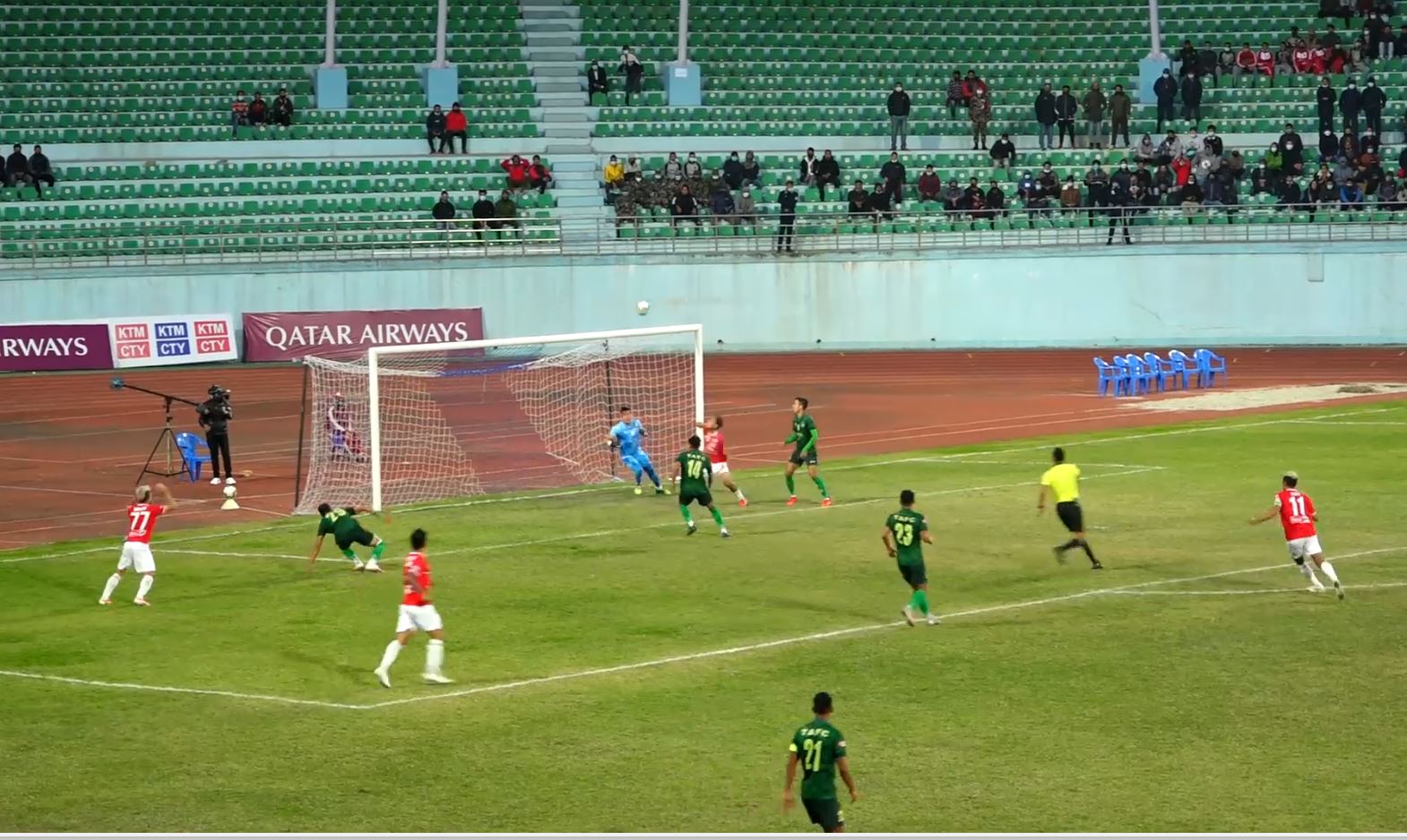 शहिद स्मारक ’ए’ डिभिजन लिग फुटबलमा साविक विजेता मछिन्द्र एफसी त्रिभुवन आर्मी क्लब बराबरीमा खेलेका छन् । सोमबार भएको खेलमा मछिन्द्र मछिन्द्र एफसी र साविक उपविजेता त्रिभुवन आर्मीले गोलरहित बराबरी खेलेका हुन । त्रिपुरेश्वरस्थित दशरथ रंगशालामा भएको रोमान्चक खेलमा दुबै टोलीले पाएको मौकामा सदुपयोग गर्न सकेनन् । आक्रामक रुपमा प्रस्तुत भएपनि दुबै टिम गोल गर्न सकेनन् । दशौँ मिनेटमा विशाल राईलाई फउल गरेपछि पाएको फ्रिकिकमा डिफेन्डर ओमिलाजा करिमको प्रहार फ्रेममा पर्न सकेन । खेलको २६ औं मिनेटमा मछिन्द्रले गोलको अवसर गुमायो । रञ्जित धिमालको क्रसमा नुर्लान नोभ्रुजोभको प्रहार आर्मीका गोलकिपर विकेश कुथुले बचाए । सोहि रिबाउन्ड बलमा सुनिल बलको प्रहार पनि विकेशले बचाए । त्यसपछि आर्मीका सन्तोष तामाङले गोललाइनबाट बल क्लियर गरेका थिए । आर्मीका कप्तान भरत खवासले ३८ औं मिनेटमा पेनाल्टी क्षेत्रको ठिक बाहिरबाटको फितलो प्रहार मछिन्द्रका गोलकिपर विशाल श्रेष्ठले सहजै आफ्नो पन्जामा पारे । मछिन्द्रका विशाल राईको कर्नरमा ६६ औं मिनेटमा कप्तान सुजल श्रेष्ठको प्रहार फ्रेममा पर्न सकेनन् । यस बराबरीसँगै मछिन्द्रले २ खेलमा ४ अंक जोडेको छ । मछिन्द्रले पहिलो खेलमा एनआरटीलाई २–१ ले हराएको थियो। अघिल्लो पटकको लिगको अन्तिम खेलमा मछिन्द्रले आर्मीलाई १–० ले हराएर उपाधि चुमेको थियो । यस अधि भएको खेलमा पनि ब्रिगेड ब्वाइज क्लब र न्युरोड टिम एनआरटीले बराबरी खेल्दै अंक बाडेका थिए ।